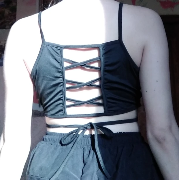 Summer 2021 Sexy party top, 4 Designs Backless Hollow Out Sleeveless Short Crop Top Camisoles streetwear black lace up Crop Top Features: Brand New & High quality. Pattern: Solid Elasticity: Elastic. Size: S/M/L Colour: as pictured To make sure you get the right size, please refer to this size chart: Size Length Bust S 30cm 74cm M 31cm 76cm L 32cm 78cm Models Size Length Bust S 40cm 77cm M 41cm 82cm L 42cm 87cm XL 43cm 92cm Colour: as pictured Gender: Female Package: 1 Piece Specifics: 1cm=0.393inch, 1inch= 2.54cm