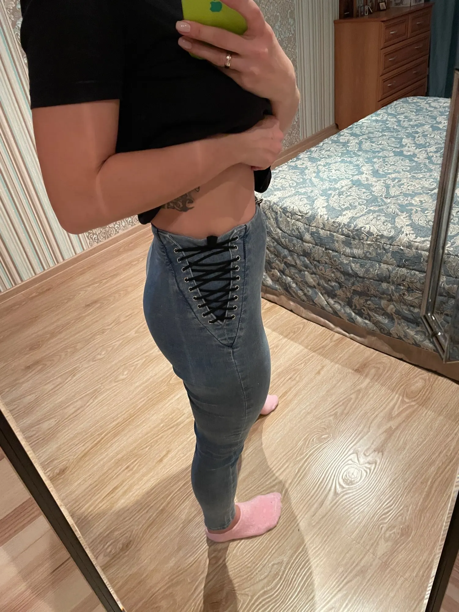 Sexy Lace-Up High Waist Jeans Waist width hip width thigh width front file pant length leg opening