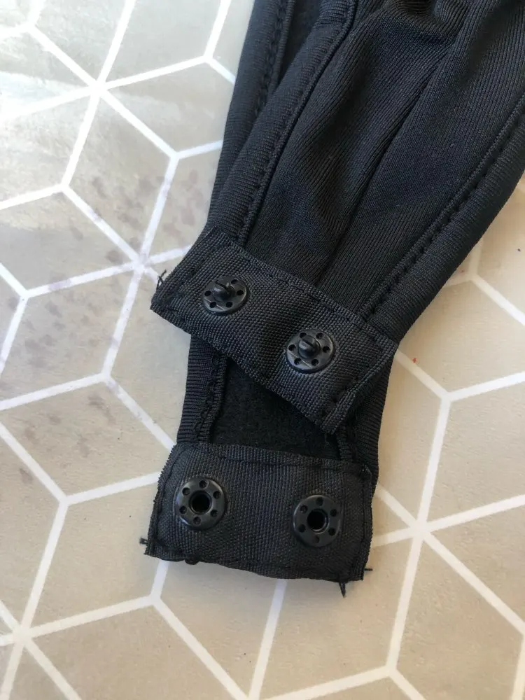 Good fabric and very warm inside, as if it were thermic. Size well, it's not very bright and on the closure you have on the bottom if you paint the edges a little bit to the legs but I'm very happy and I'll buy it blank.