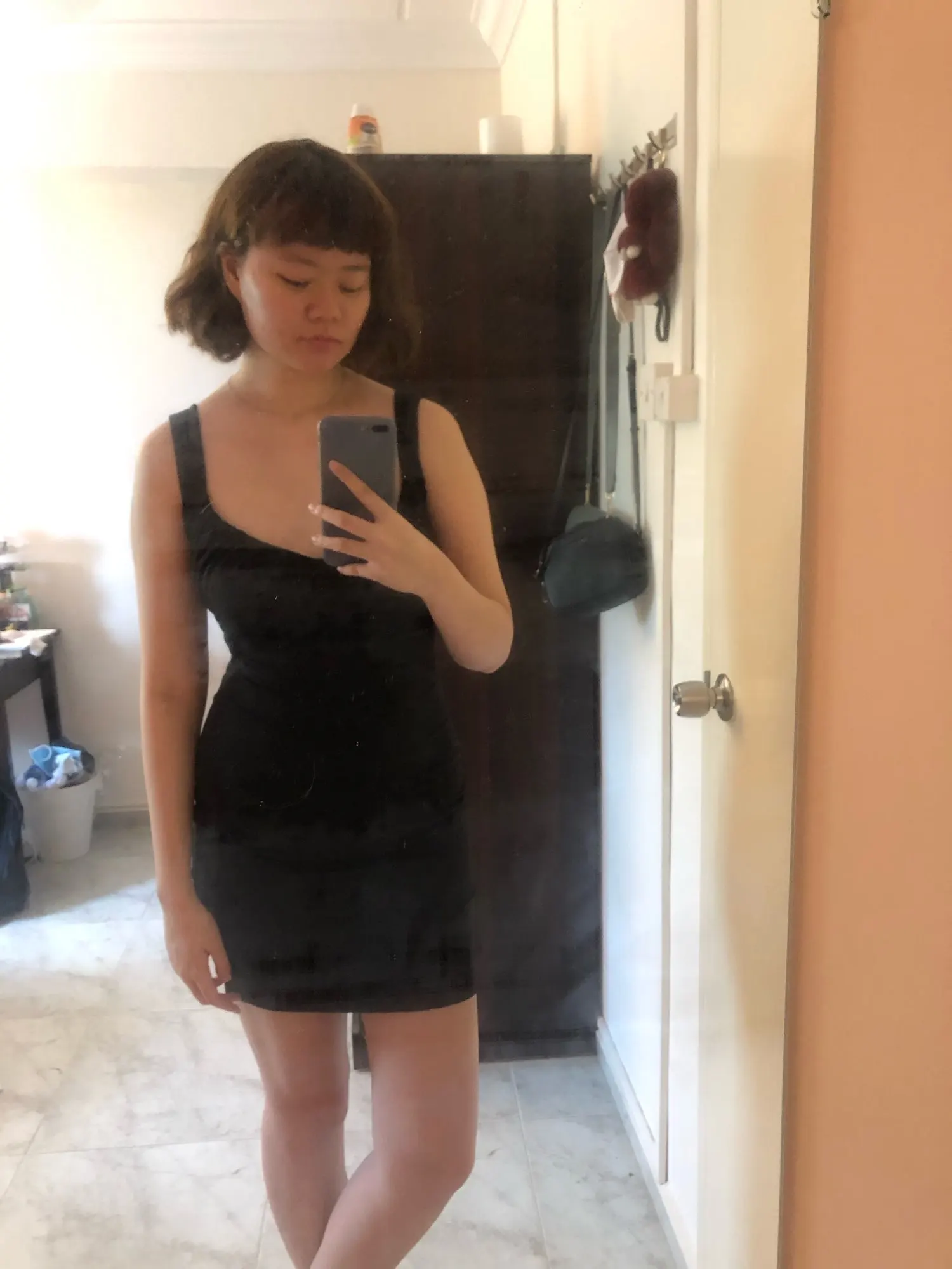 Chest 88cm, waist 71cm, hips 100cm, height 177cm. Fits perfect!!! The material is nice and stretchy enough and the skirt isn’t short at all! The dress shipped quick as well, 10/10 would recommend