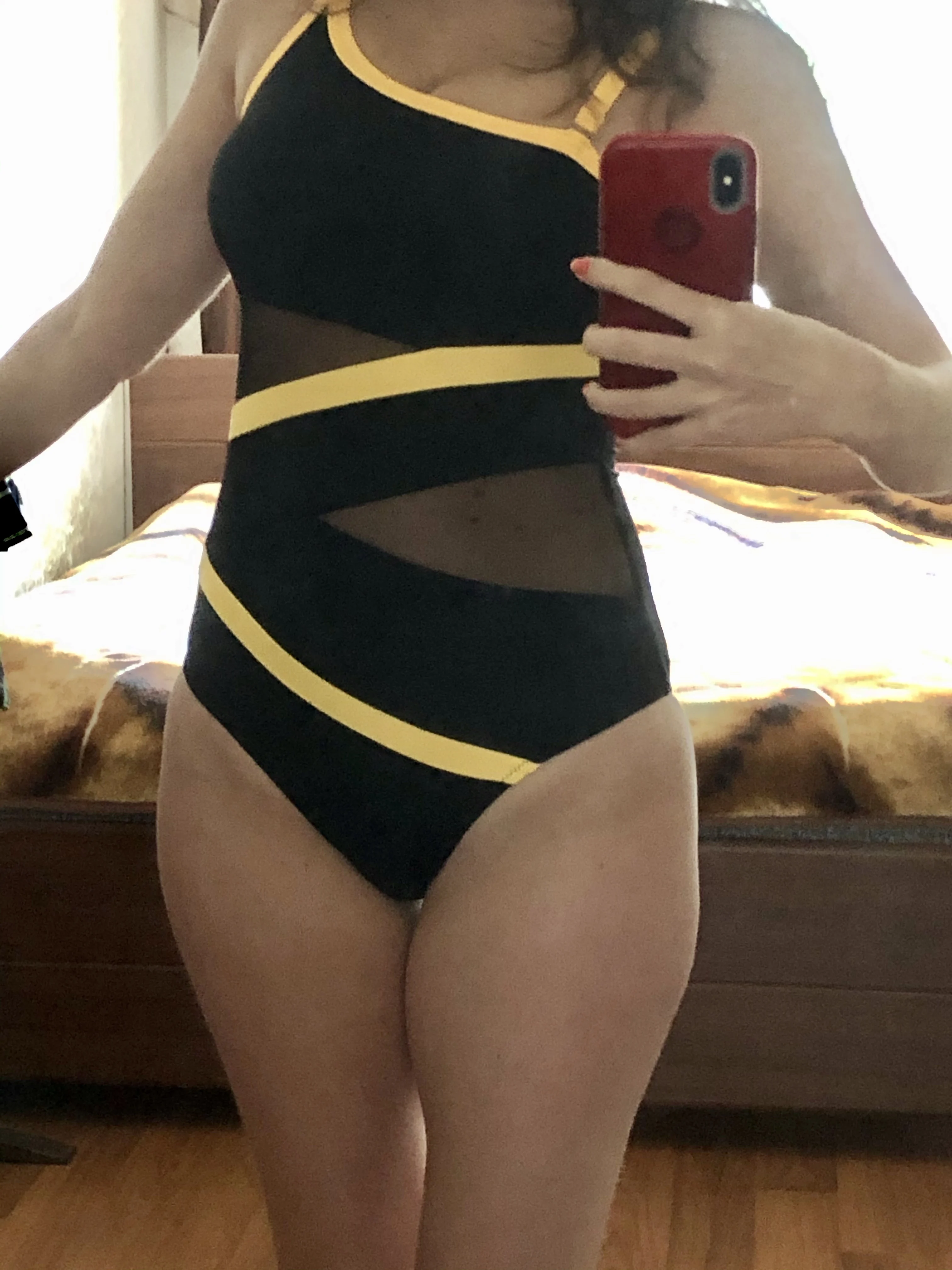 Swimsuit really liked! Fast shipping. The goods came in three weeks, despite quarantine. In the set bonus put earrings and a pouch. Swimsuit as in the photo. My size s height 160, came up perfectly. On growth more would be small. On the chest of the cups, perfectly hold the big chest.