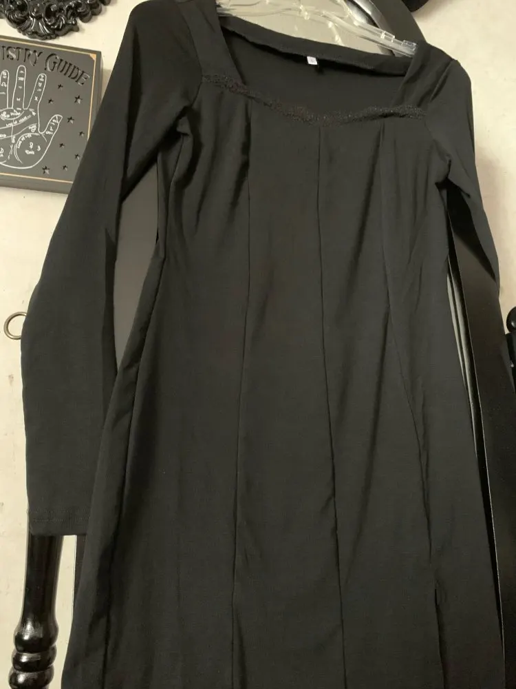 Looking for the perfect party mini dress? This Sexy Patchwork Long Sleeve Split Dress with a low neck cut is just right.