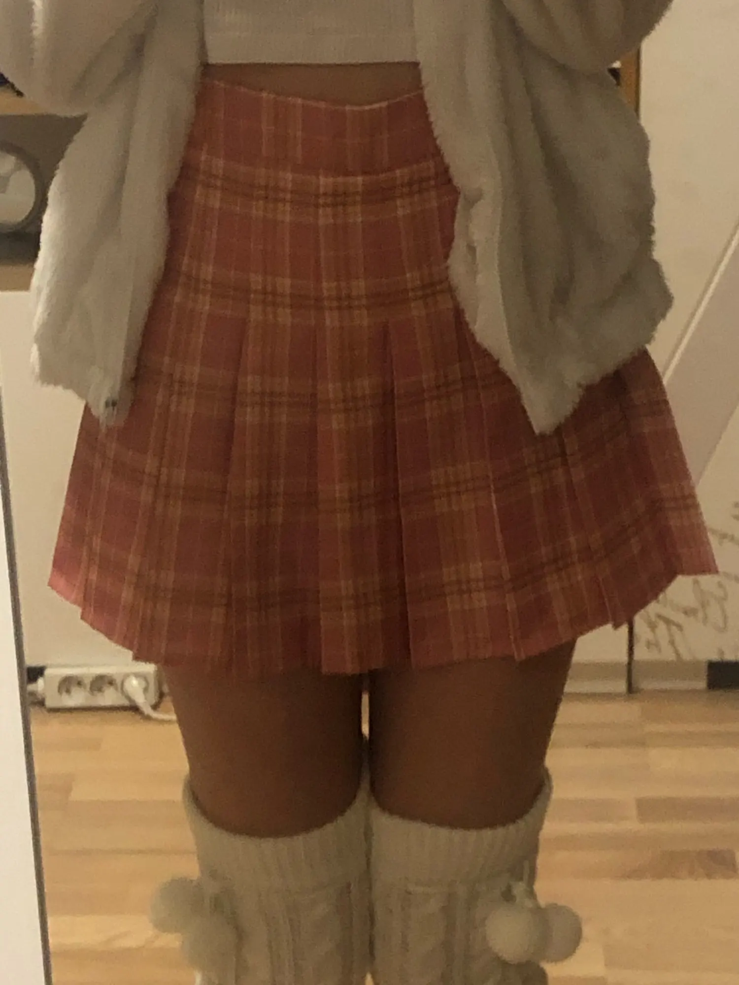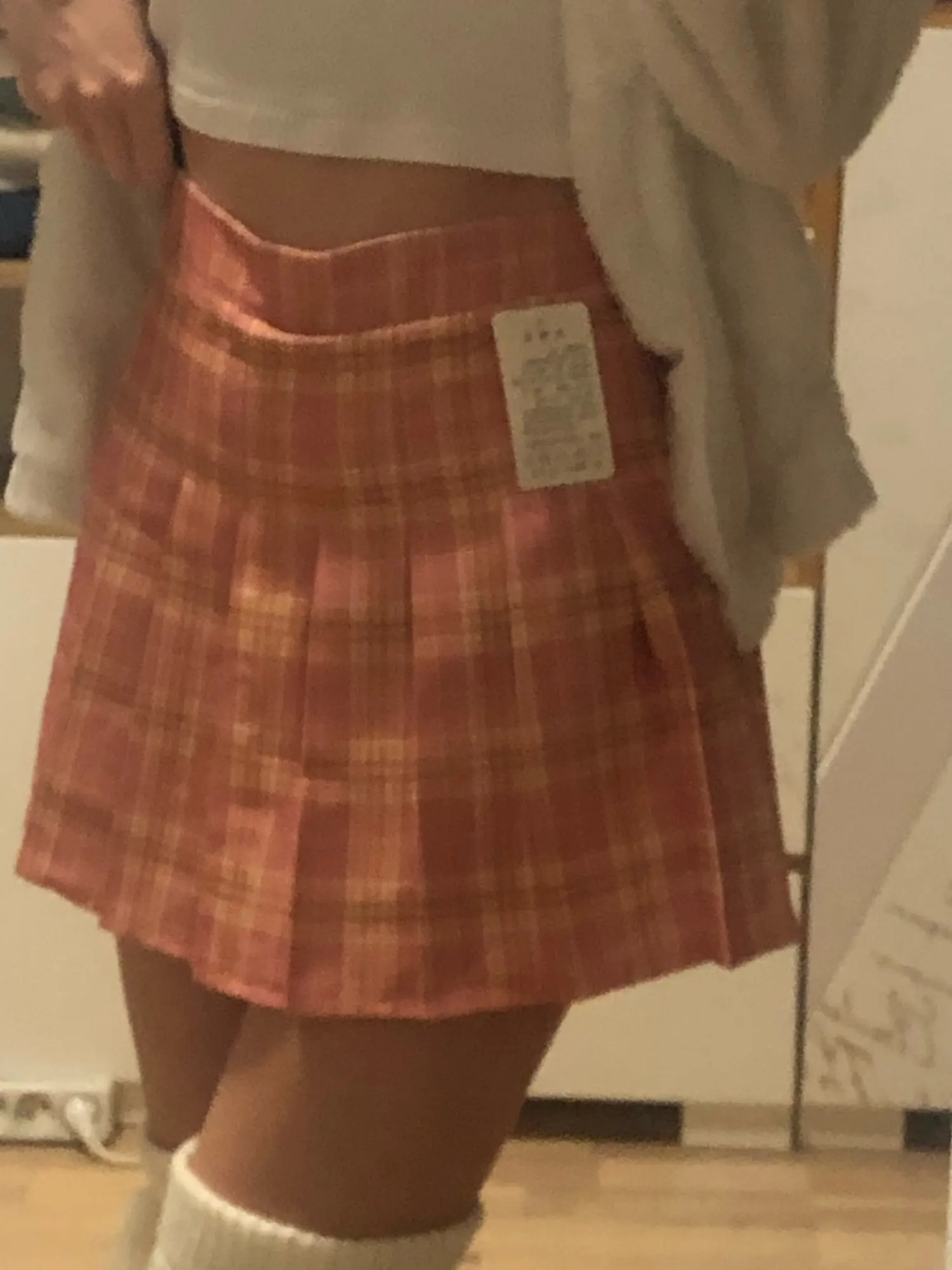 Dotarła very quickly. Ordered 11.11 delivered 30.11.spodnica very short, I wear casual XS But zamówiłam S is good, although barely reaches me for Butt, well that are these shorts underneath. Not prześwituje although white color.