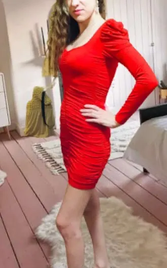 Delivery 21 days, fast enough. Very beautiful bright red dress. It is not thin, does not shine through and there is a lining to the waist. On its parameters, height 165 cm, weight 52 kg, 86/62/94 took the smallest size s. The dress sat on the figure, tight, the fabric stretches slightly, there are no zippers and buttons. Quality is good. I recommend to buy.