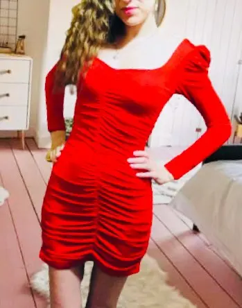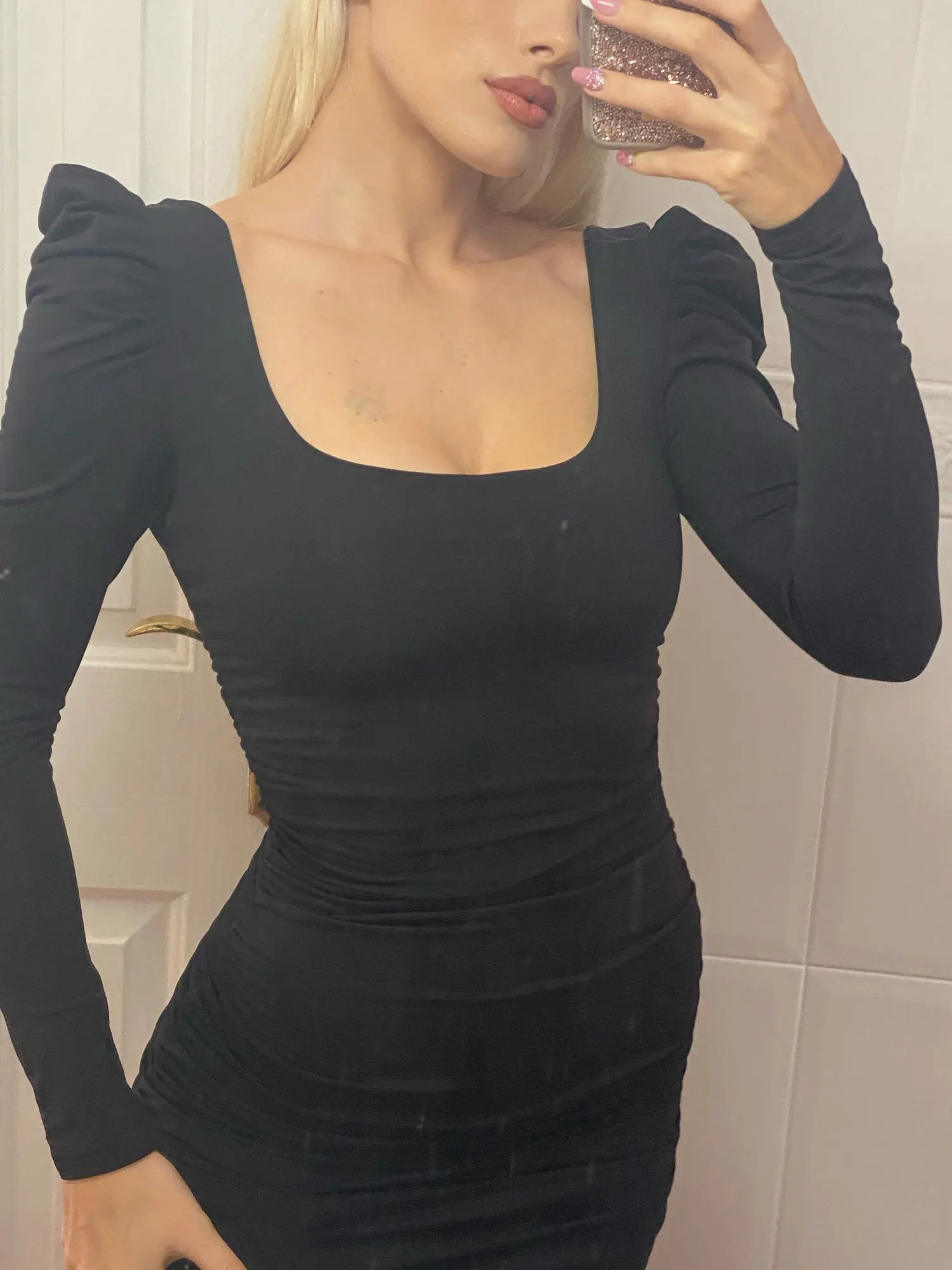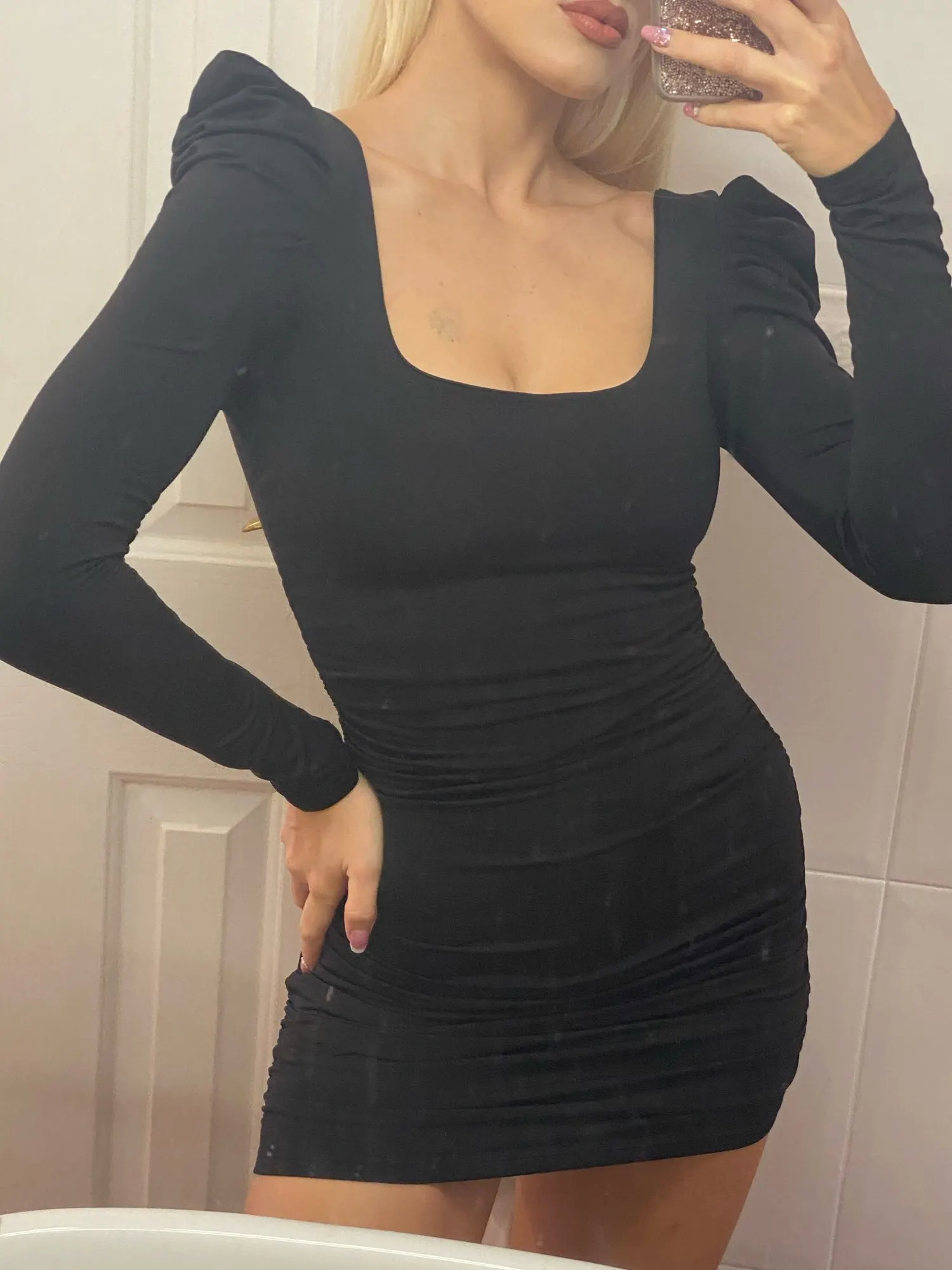Sexy Puff Sleeve Ruched Bodycon Dress