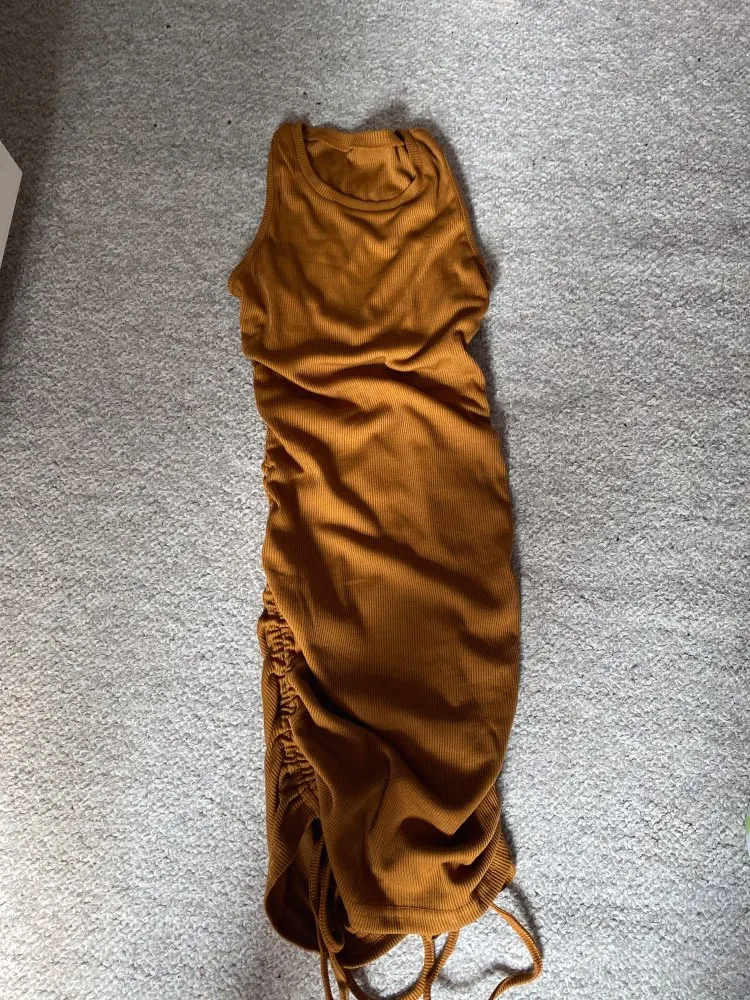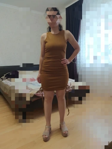 Exactly as on the video! A very nice dress, a little short but who cares? I took it in brown and blue but I have one picture of the dress in Brown