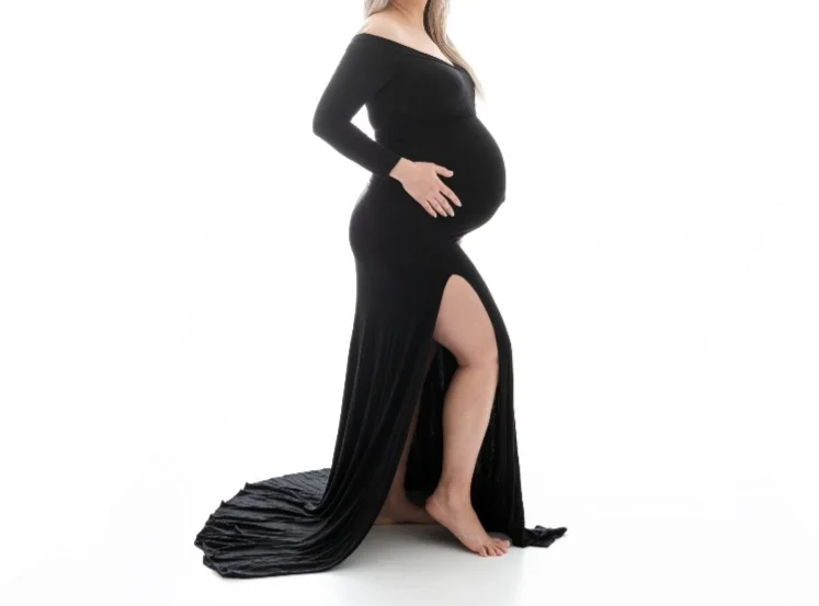 Sexy Shoulderless Maternity Dress, Ideal For Photo Shoots Maxi Gown, Split on the Side, for Pregnant Women, Long Pregnancy Dress