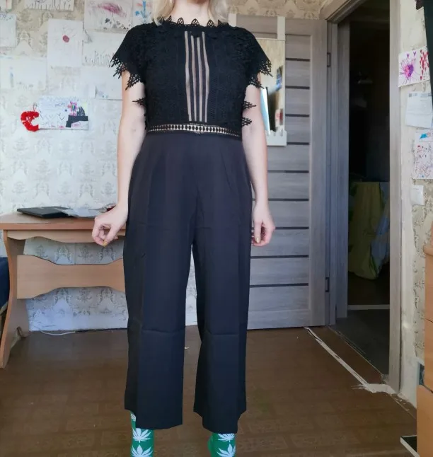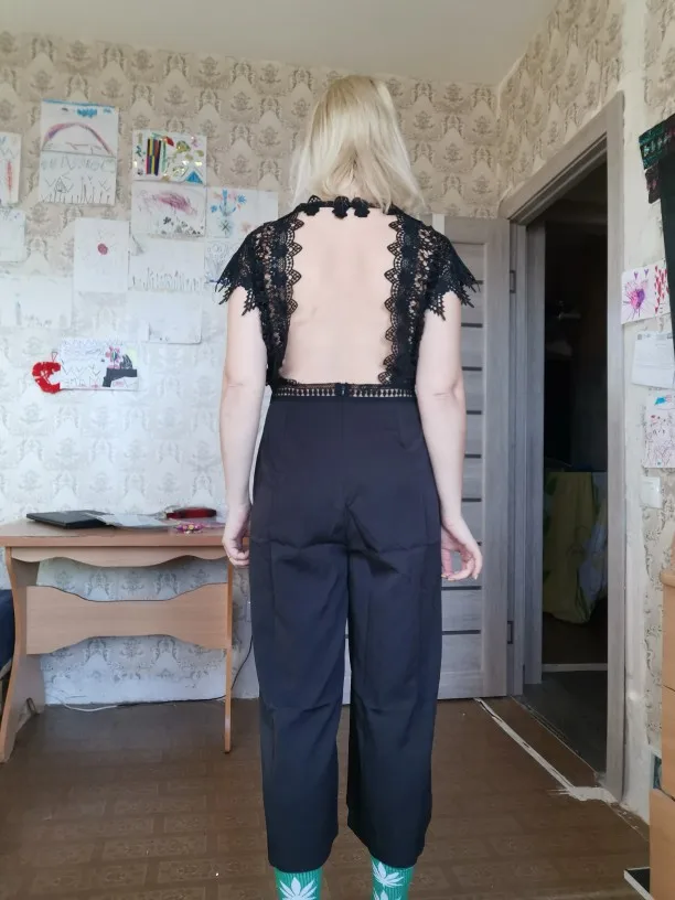 I came to the overalls with quality is not very: there is not a cropped overlock in the neck area, and on the back in a prominent place at the lace sticking out a long thread. It is not clear whether it will crawl or not. I ordered for the new year, but the goods with 8.12 stuck at customs, and came after the holidays. I wanted to leave, but I did not like the quality. If the fabric of the trousers is very electrified, you can treat with antistatic, but overlock errors cause doubt. Probably just got me one. On the parameters: 92*82*104 size XXL is free, it is possible that XL would have sat better. Externally very beautiful. I will.
