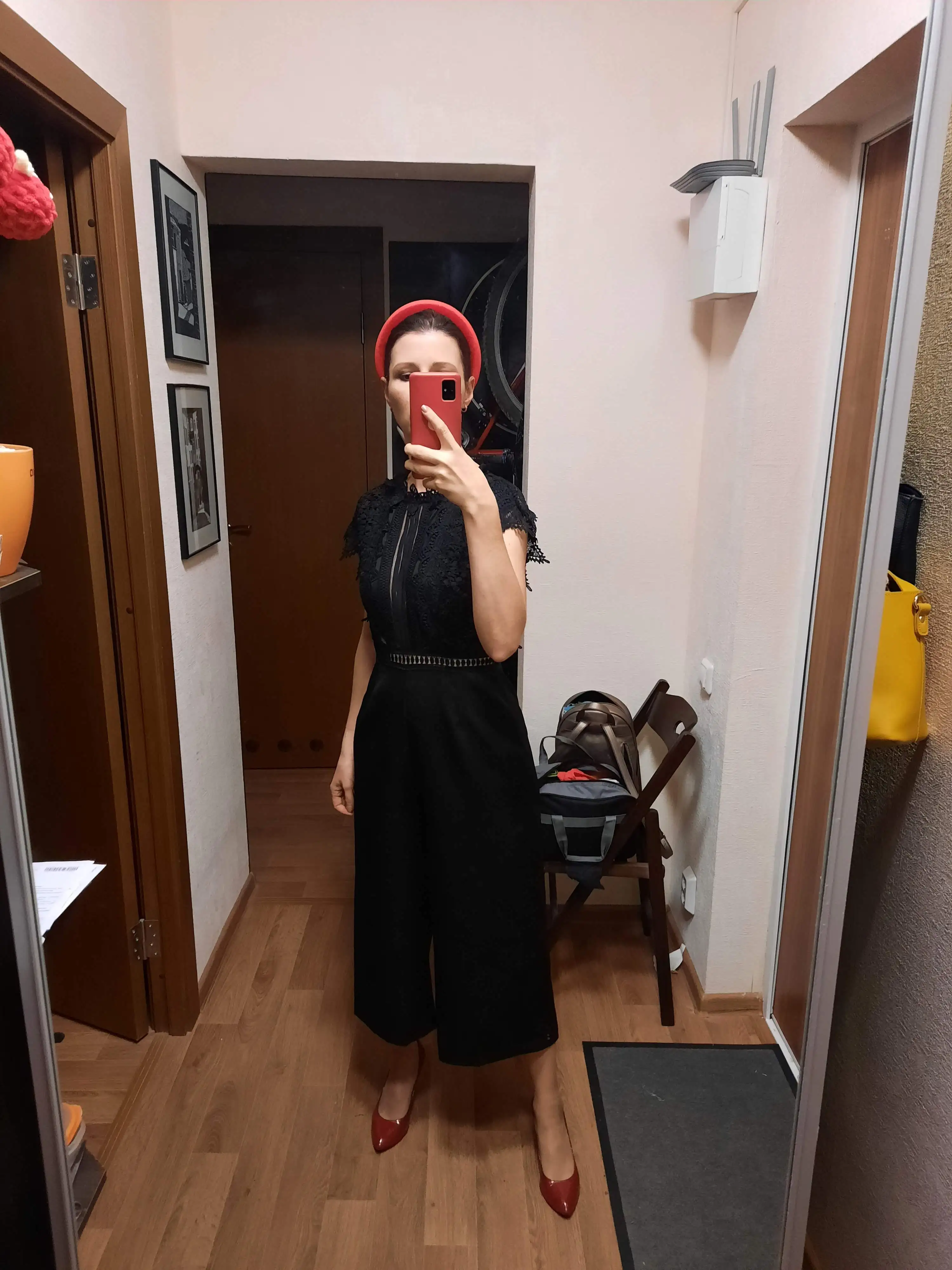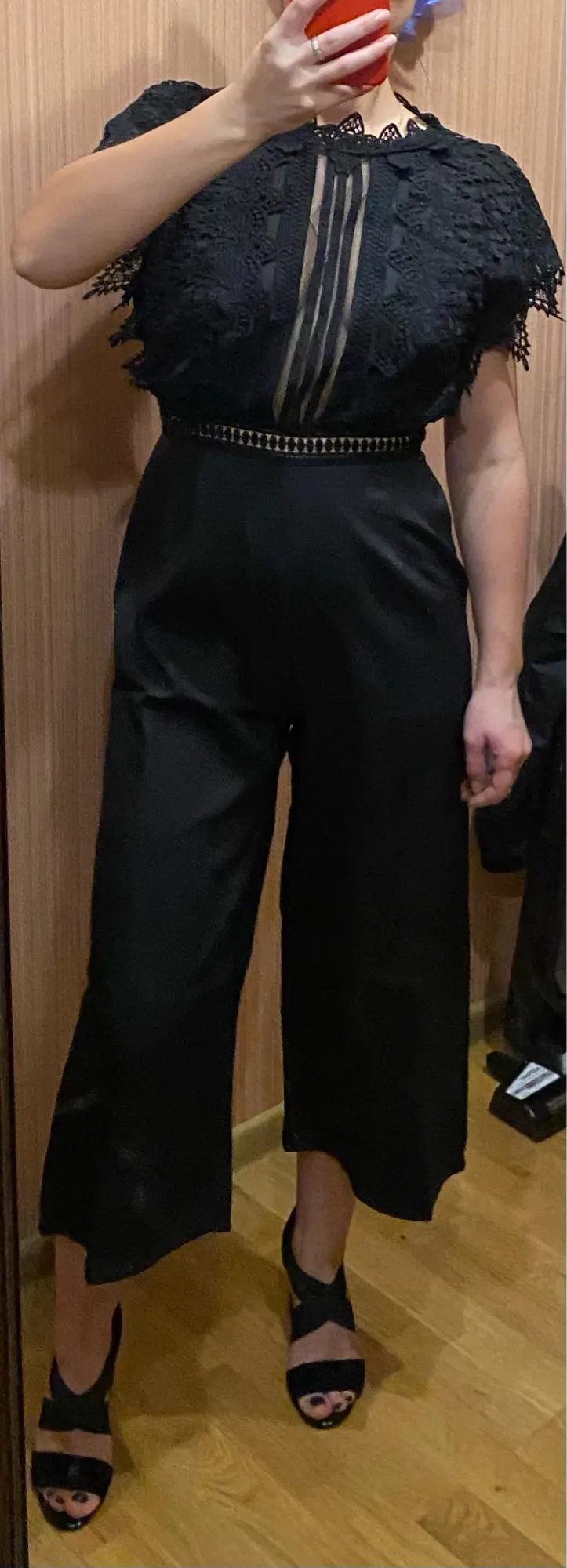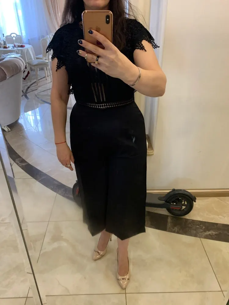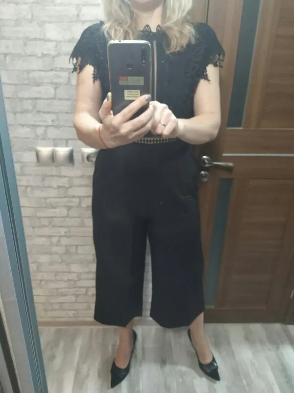 The overalls are very beautiful. Took the size M, my parameters are 88-69-96, in the hips is chic, in the waist there is still a place, the top is quite free, but it does not catch the eye thanks to the cut, on girls with a breast bigger than mine in general will look great. But on growth a little would like more, I have a height of 166 cm, so if you raise your hands, it feels that the overalls are strongly pressed, smashed into the crotch, strongly stretched behind, with lowered hands, it seems that everything is fine, it's also quite convenient to sit. The material is pleasant to the body, smooth neatly, at a small temperature or through a rag, sticks. In general, the thing is good, I recommend.