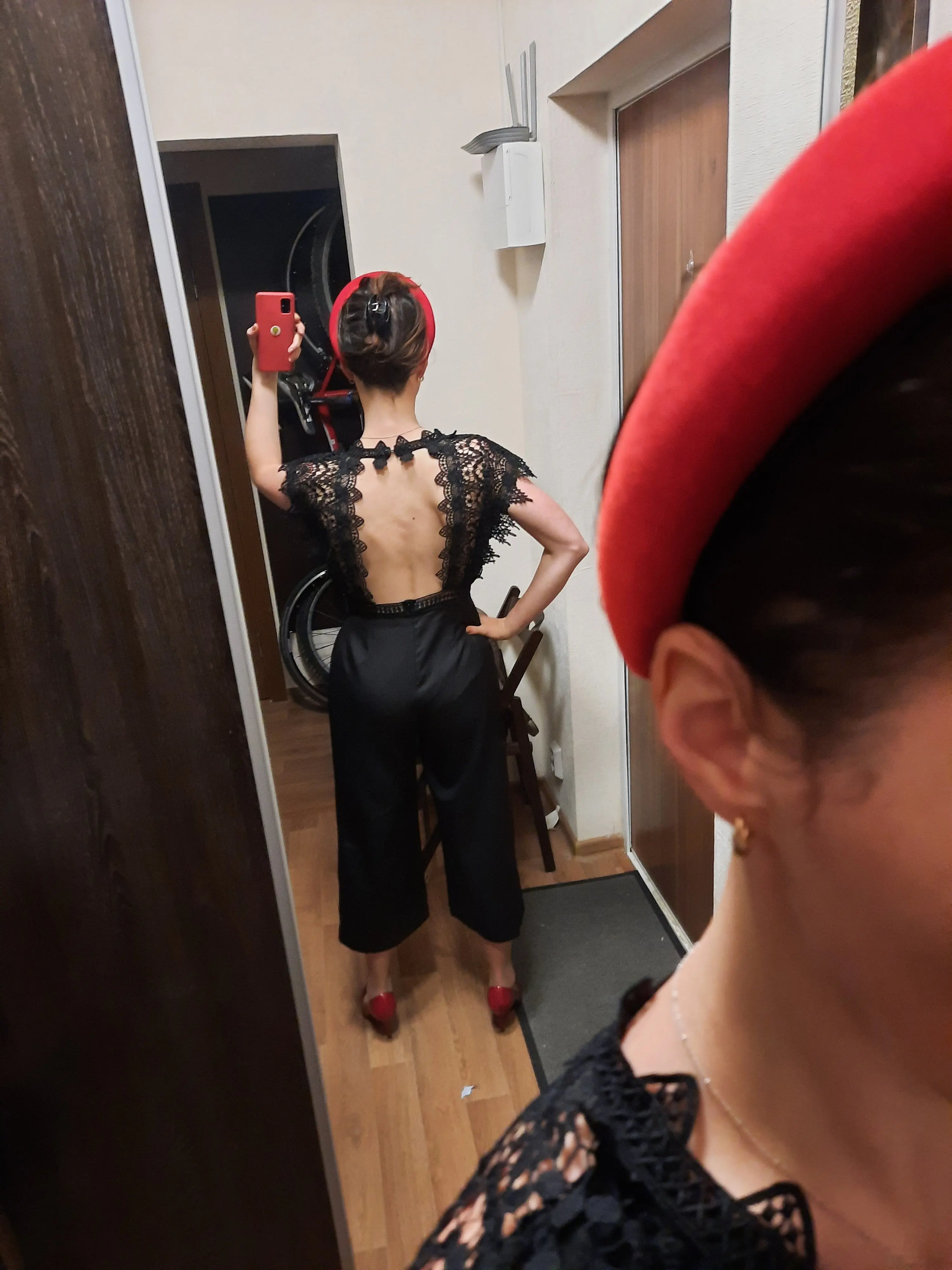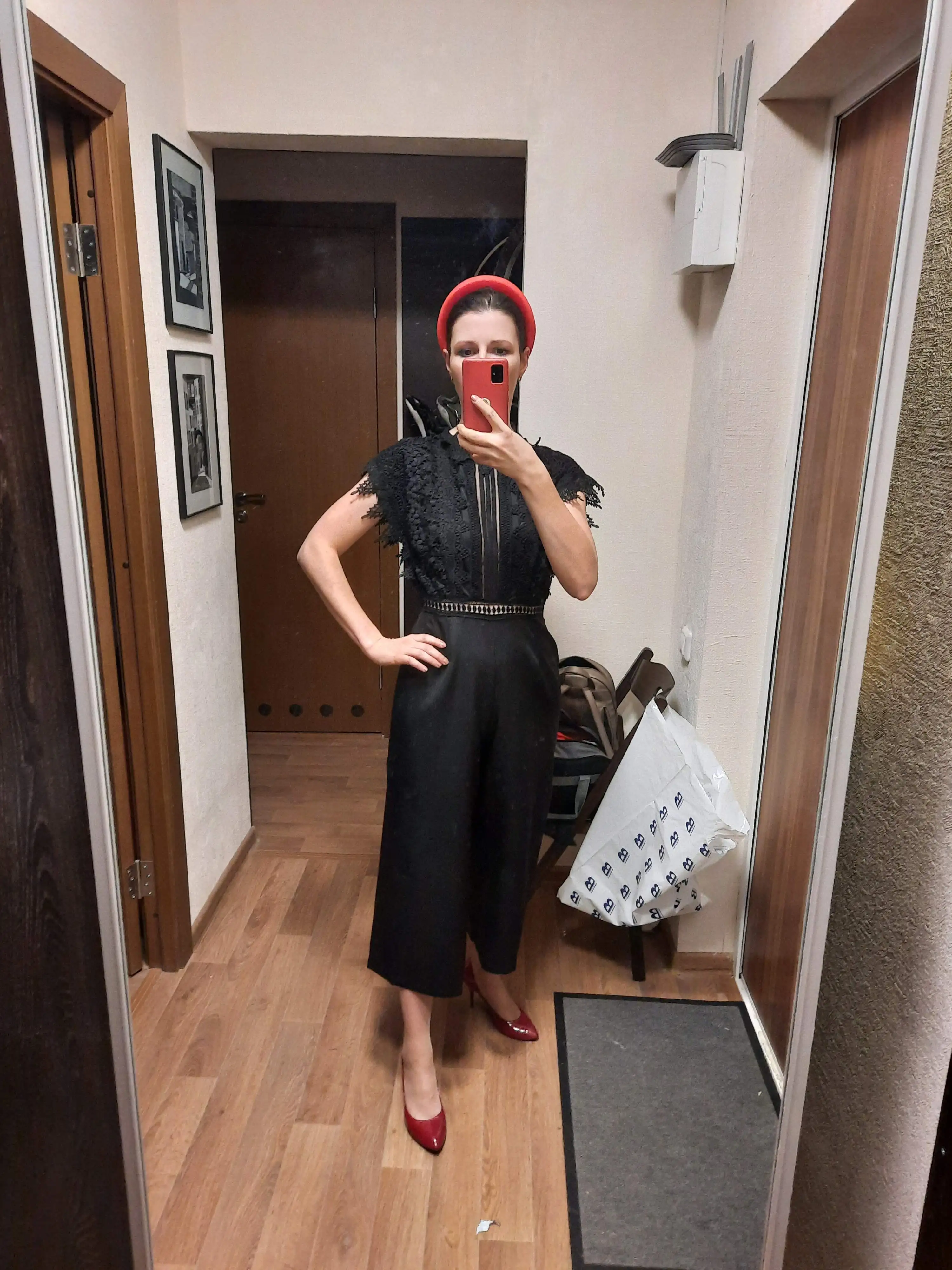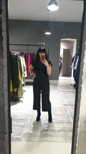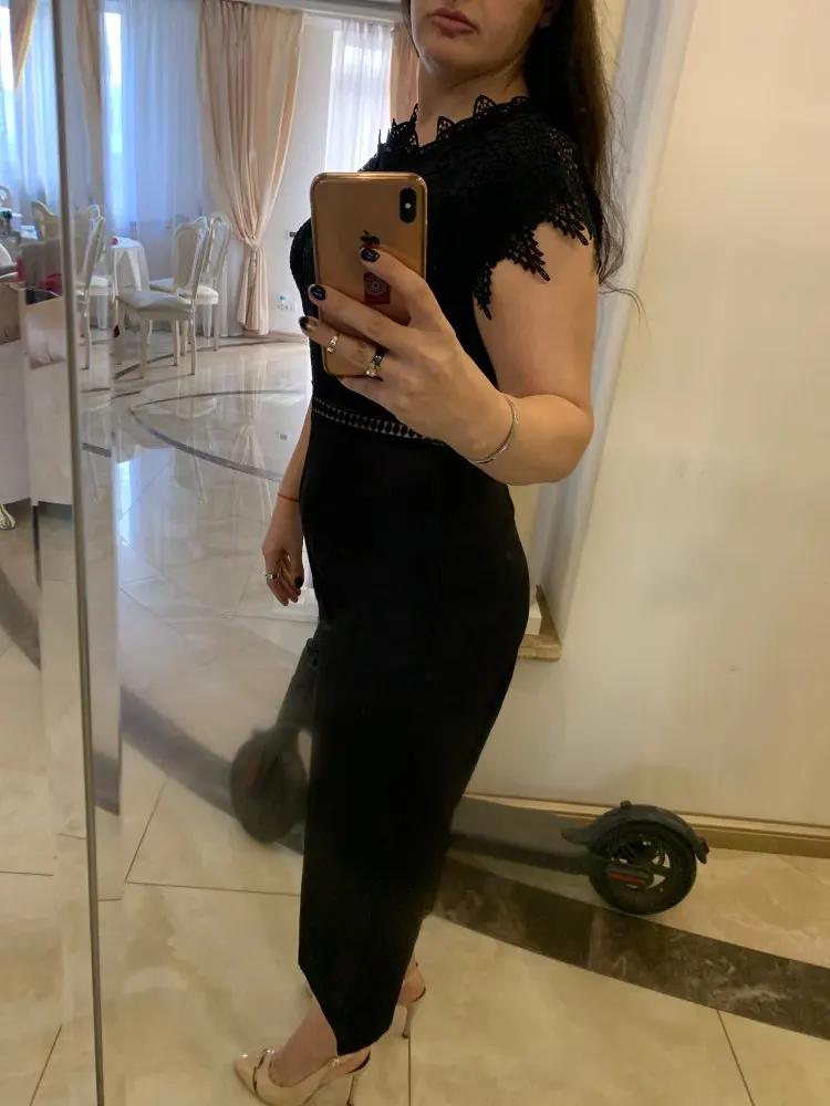 The overalls are very beautiful. Took the size M, my parameters are 88-69-96, in the hips is chic, in the waist there is still a place, the top is quite free, but it does not catch the eye thanks to the cut, on girls with a breast bigger than mine in general will look great. But on growth a little would like more, I have a height of 166 cm, so if you raise your hands, it feels that the overalls are strongly pressed, smashed into the crotch, strongly stretched behind, with lowered hands, it seems that everything is fine, it's also quite convenient to sit. The material is pleasant to the body, smooth neatly, at a small temperature or through a rag, sticks. In general, the thing is good, I recommend.