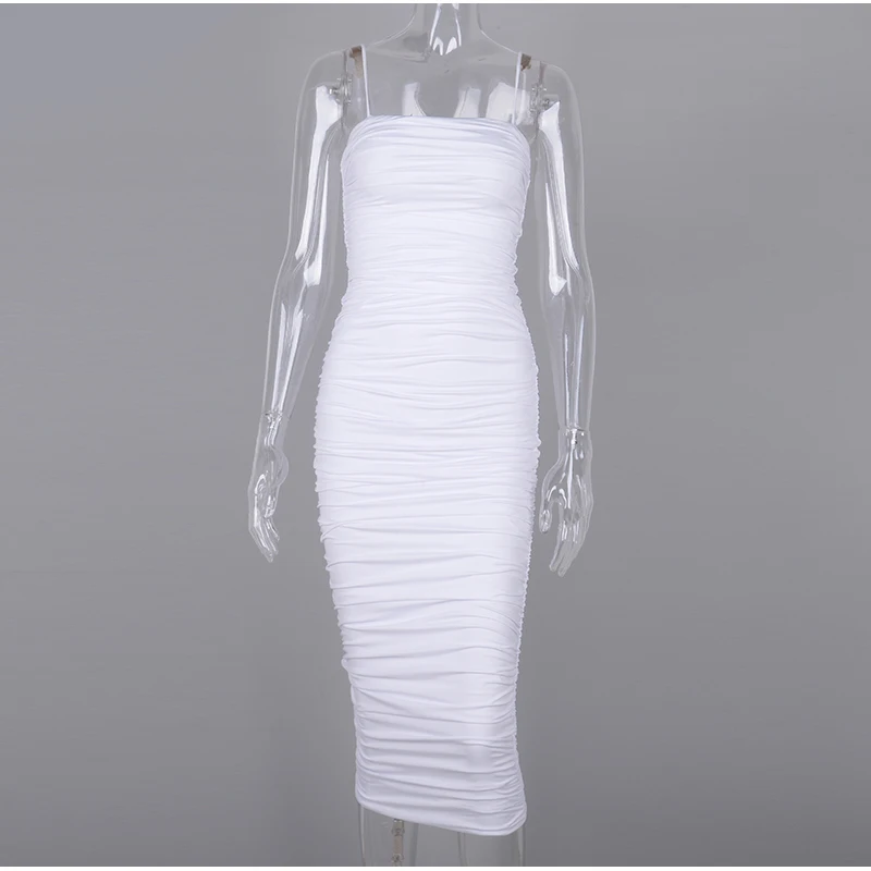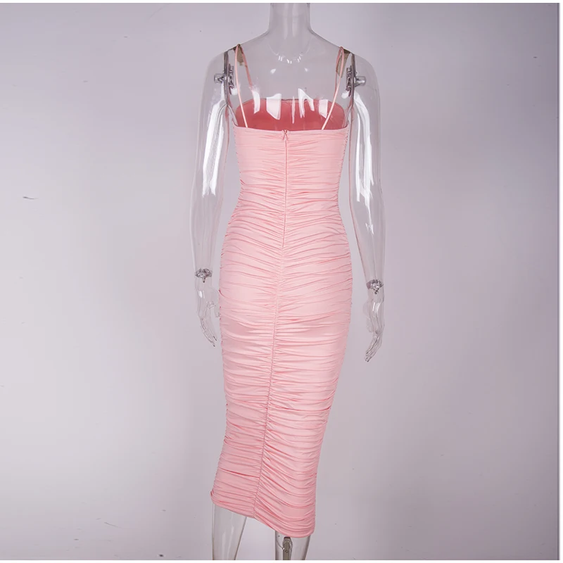 White Summer Dress Women 2020 Elegant Ruched Maxi Dress Pink Party Long Dress Sexy Dresses Woman Party Ni