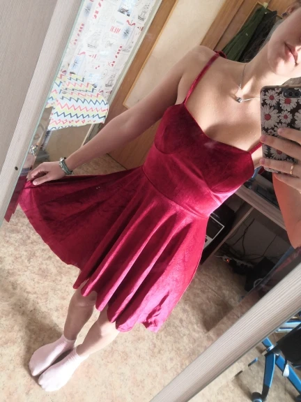 Just an awesome dress. At a height of 162 by 13-15 cm above the knee. On the size 44-46 (96/72/100) the village is very good, even there is even a stock. I have a small chest, but I think that for a big one it will not be very comfortable. The Tula region reached 16 days. Threads do not stick out, Lightning works well, there are no holes. Everyone is happy.