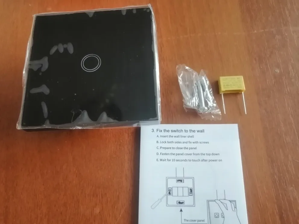 Came in 12 days in the middle Volga region. In the kit there is a capacitor of power, thanks to which you will not have problems with the light, as the light-colored light bulbs are lit even when the light is turned off off off the double switch also has one capacitor.