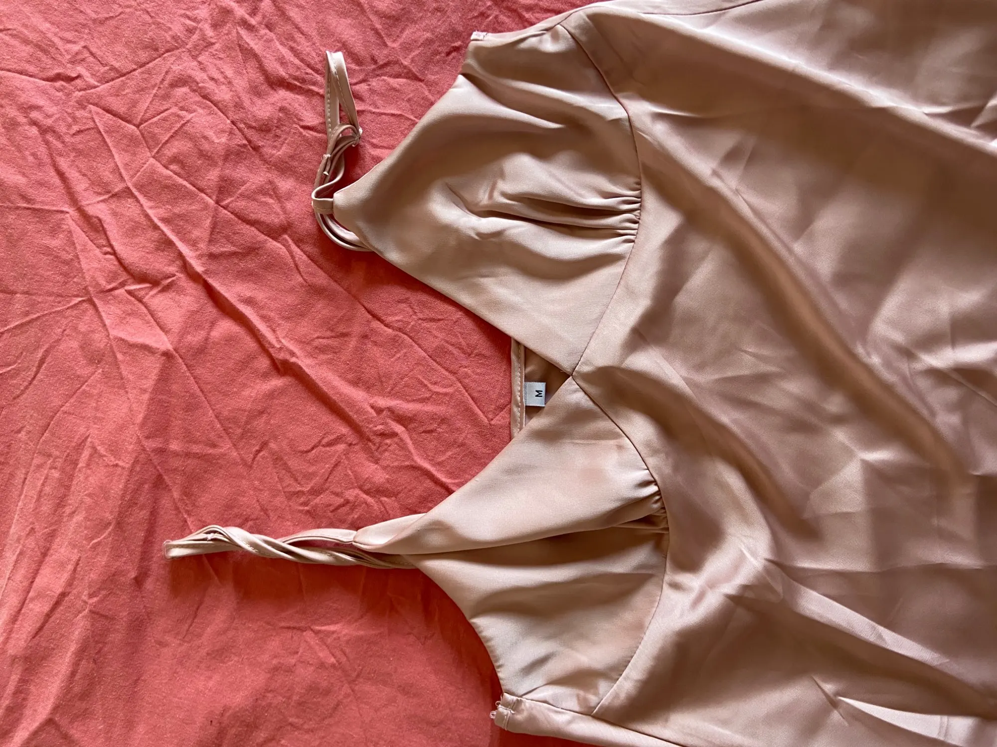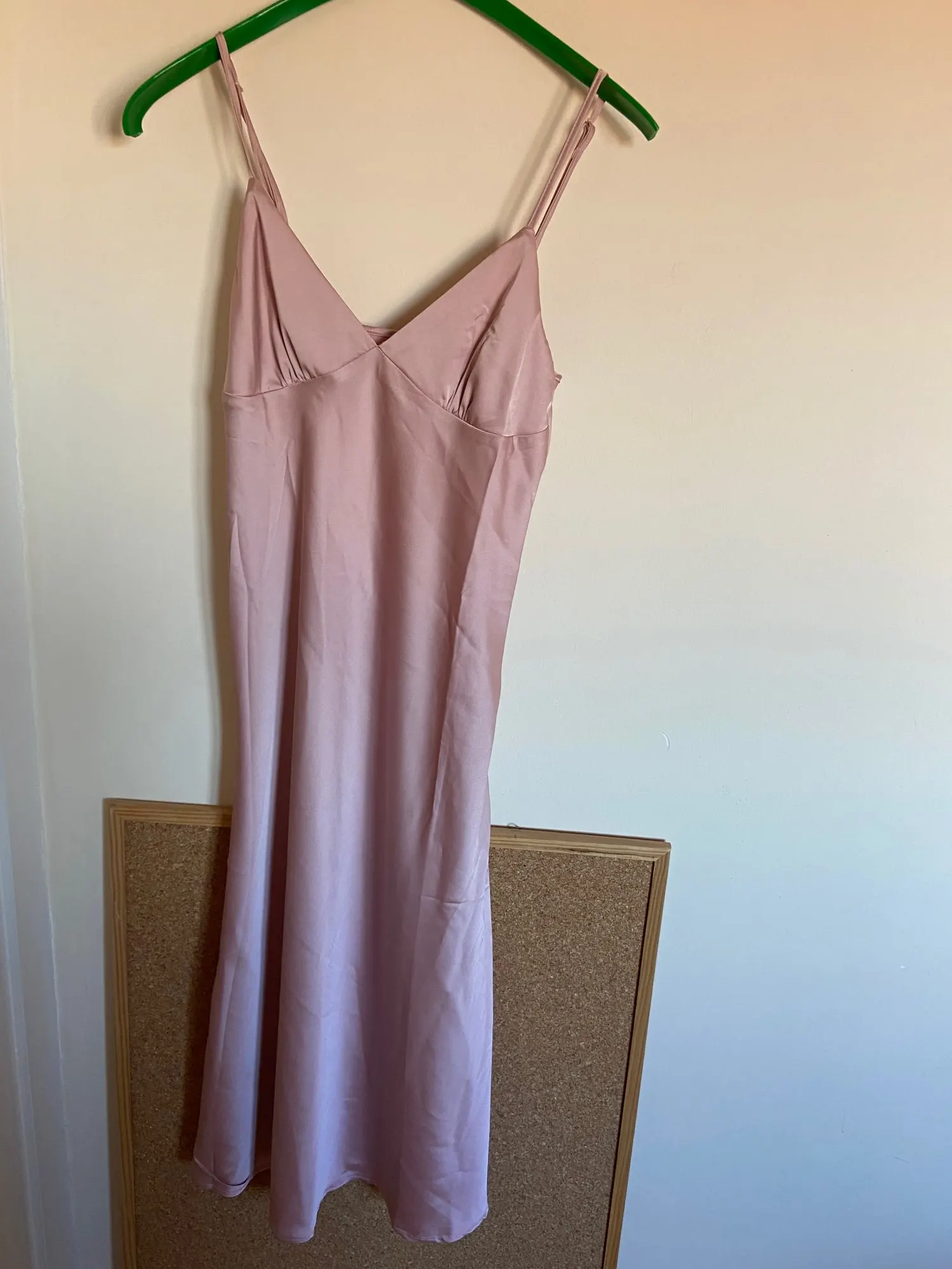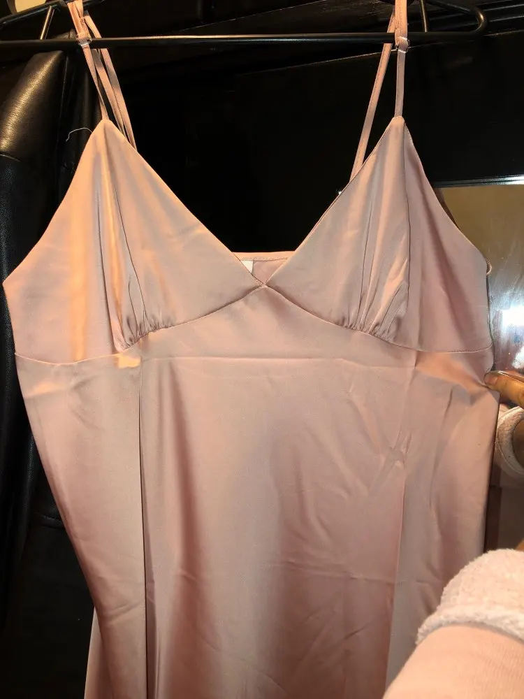 Elegant Satin Spaghetti strap V-Neck Dress that can be worn day or night, paired with a jacket, or worn as an evening gown