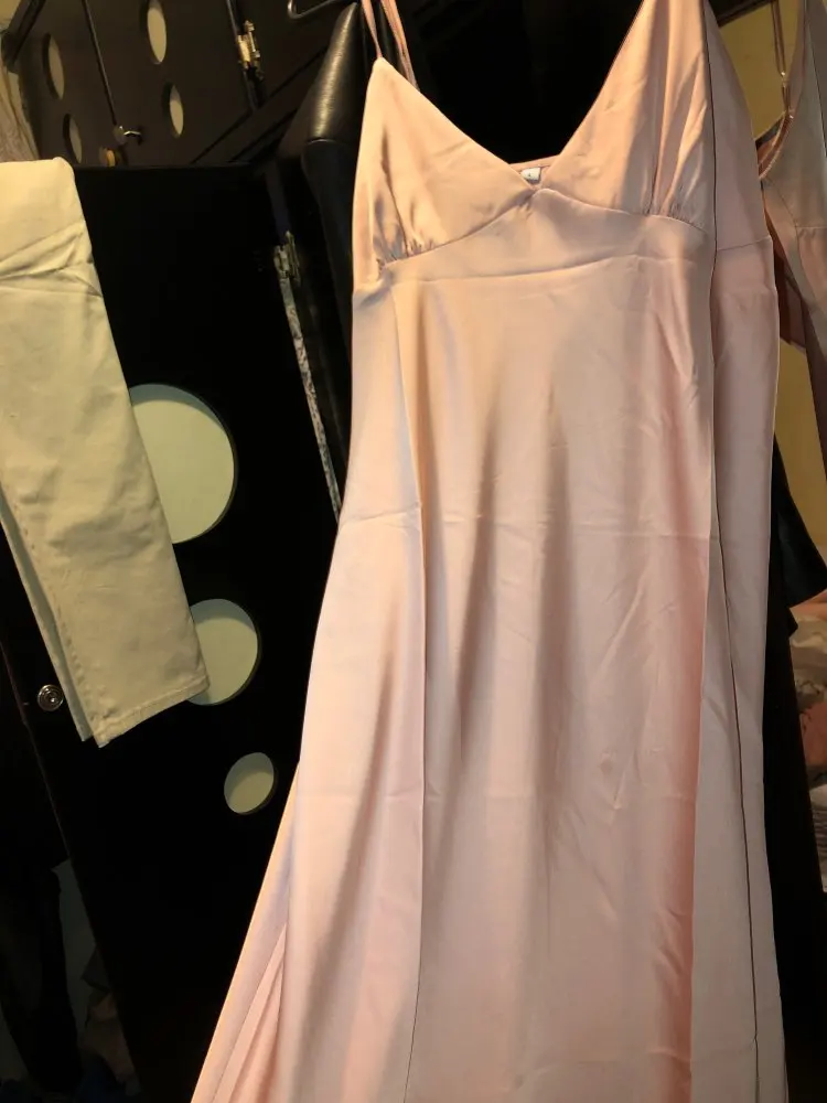 El vestido es hermoso debí haber pedido una talla mediana, por que me guié en las tallas del vendedor y me sugería la talla L así que compre esa, Pero el color es hermoso, la tela se ve muy bonita, Lo recomiendo totalmente!! Estoy enamorada del vestido!