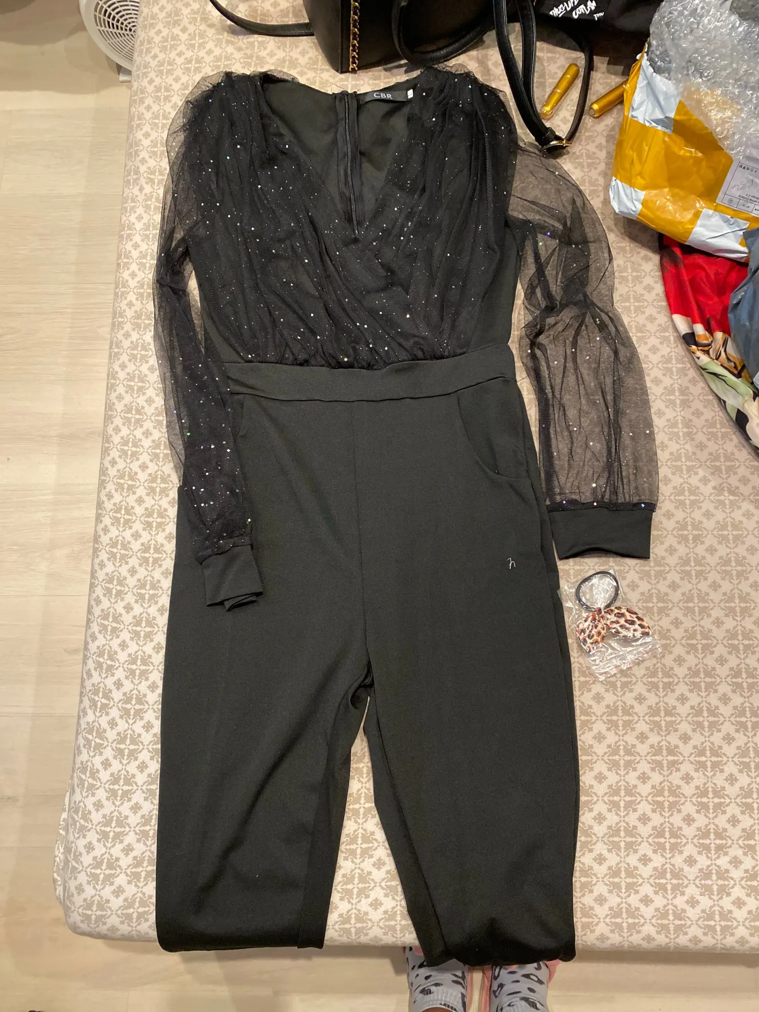 Rompers Womens Jumpsuit available in Black and Red. Elegant Sequins Mesh Glitter Party Night Sexy 2022 Spring Long Pants One Piece Jumpsuit Overalls