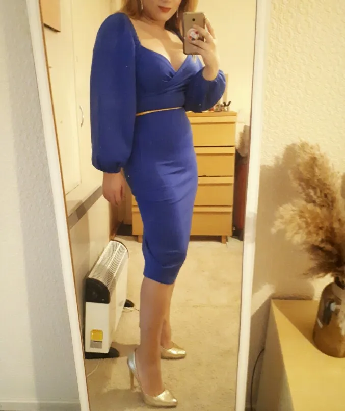 dress was very stretchy.. nice quality... fits well.. am i uk size 12 n took large... nice midi dress.. fabric a bit thin but ok.. store recommended
