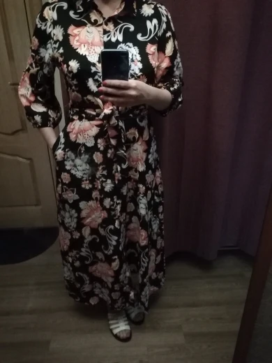 Very pleased with the coloring, bright, juicy, beautiful dress, there are pockets my height 168 cm, 100-80-100, arrived quickly in Peter
