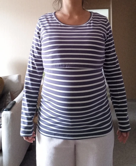 Quite wide and elastic, thick fabric. Very useful for breastfeeding. It took Mexico 3 weeks.