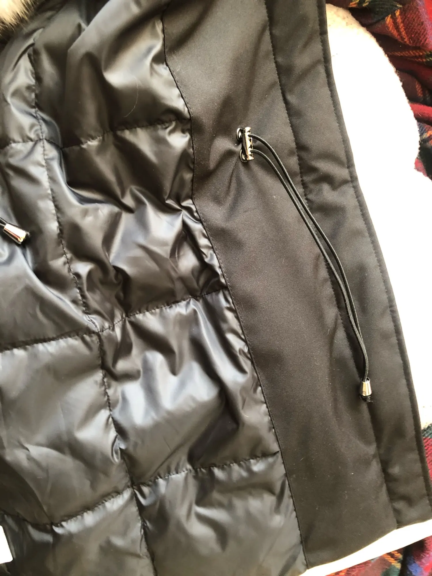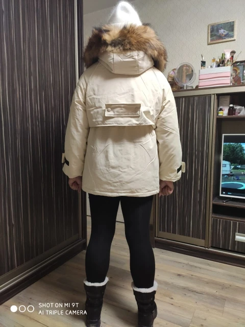 The order was made 12.11 in Novosibirsk arrived 26.11. The store sent the next day, the down jacket was tracked. Really down jacket, warm. Sewing is excellent, the fabric is dense, does not get wet, tried to pour water, drops roll down. Fur natural, fluffy, отстёгивается. My height is 168, OG 110, the waist is overstated but not critical. you can loosen the kuliska, which is adjustable. Sleeves are short, but I think to put down, there is a stock. Color melted milk. Girls took 4000 Rubles, not the price, but a fairy tale for a down jacket. I recommend the seller and the store, focused on customer reviews.