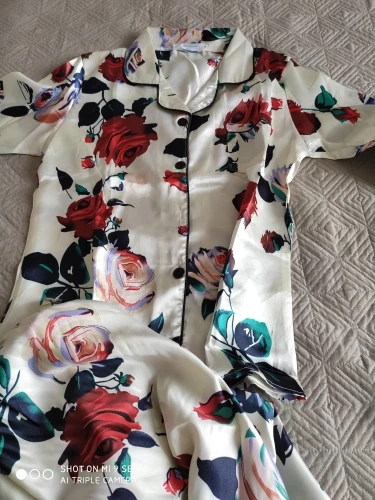 Faux Silk Flower Pajamas Set
