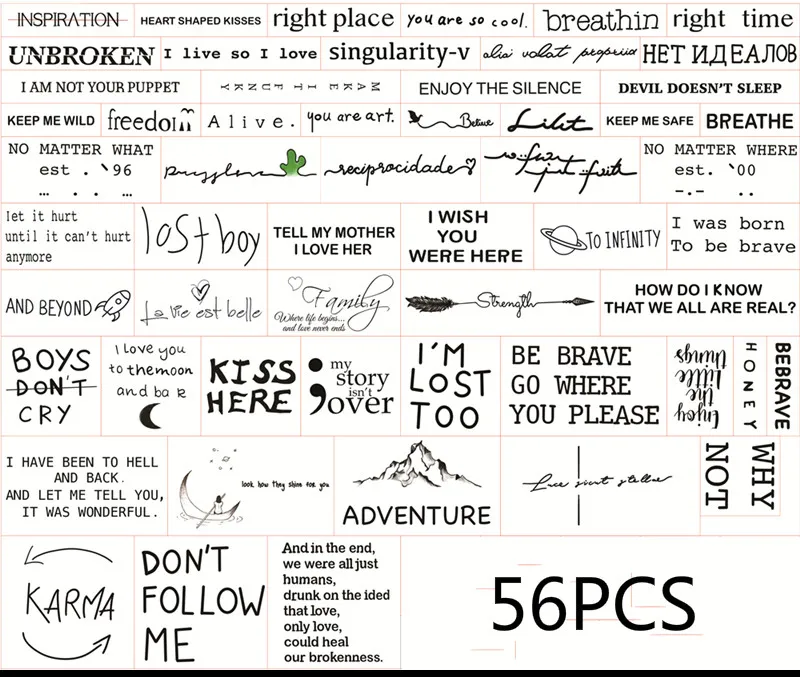 50 Sheets of Waterproof Temporary Tattoo Stickers Black Devil Doesn't Sleep English Letters Tattoo Fake Tattoo on Neck or Wrist For both Women and Men