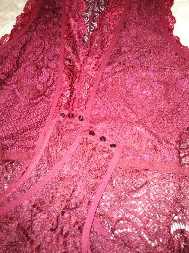 Women's Mesmerizing Deep-V Neck Hollow Out Bodysuit Red Details