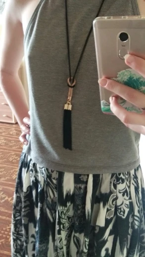 Women's Plausible Tassel Pendant Necklace Women's Plausible Tassel Pendant Necklace Model Show Women's Plausible Tassel Pendant Necklace Model Show 2 Women's Plausible Tassel Pendant Necklace Model Show Black Women's Plausible Tassel Pendant Necklace Display