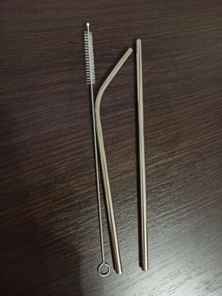 Drinkware Stainless Steel Straw Set with 1 Brush, 1 Bent elbow pipe, 1 Straight Tube