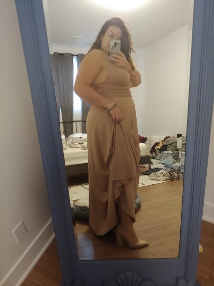 Excellent dress, it came in a month in RB. At 48-50 took XL, in size just right.