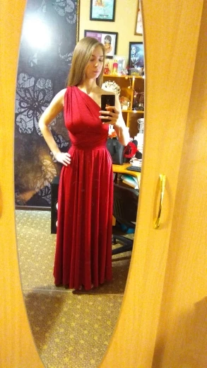 Gorgeous dress! Took on a height of 170 cm and a weight of 50 kg size M came up perfectly! Usually I wear things XS and S for the first time took a dress in size M reading reviews, thanks to an elastic band and strips of fabric adjust to its size) the fabric is very pleasant, soft, looks expensive took in burgundy color color 3 + m, there is a small noble shine. I did not communicate with the store. Before G. Togliatti went a little more than a month on 05.12.19. To 11.01.20G.