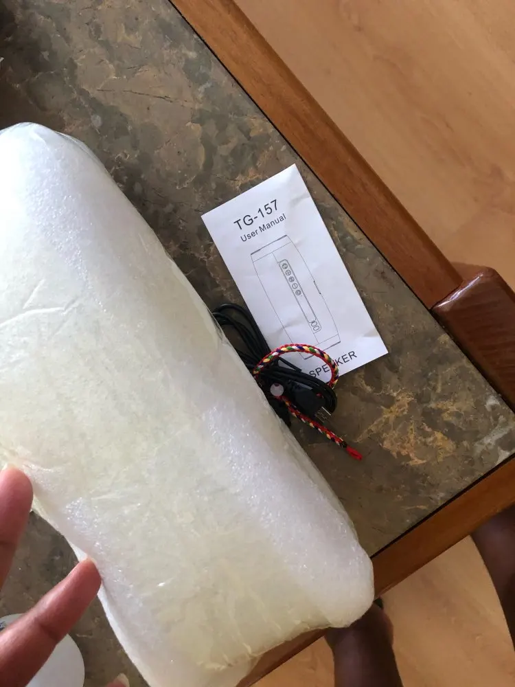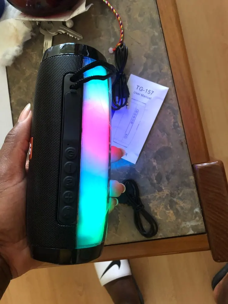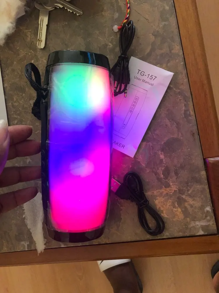 specification: Bluetooth-compatible version: 5.0 Transmission date distance: 10 m Playing time: 8-10H (volume will affect the playing time) Battery capacity: 1200 mAh Speaker: 5 W * 2 Peak value: 10 W Soundtrack: 2.0 Frequency range: 2.4 GHz Input sensitivity: 400mV Wireless transmission distance: 10 meters Signal to noise ratio: 80dB Play format: WAV, MP3, WMA Maximum TF support: 32G Operation mode: press Input voltage: DC 5 V 2A Certificate type: CE Size: 178.7 * 72.9 * 72.6mm package 1 * 157 speakers 1 *Charging cable 1 * AUX cable 1*User Manual