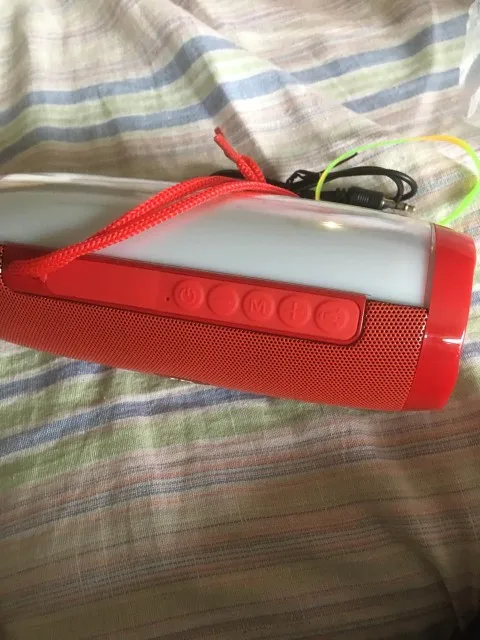 specification: Bluetooth-compatible version: 5.0 Transmission date distance: 10 m Playing time: 8-10H (volume will affect the playing time) Battery capacity: 1200 mAh Speaker: 5 W * 2 Peak value: 10 W Soundtrack: 2.0 Frequency range: 2.4 GHz Input sensitivity: 400mV Wireless transmission distance: 10 meters Signal to noise ratio: 80dB Play format: WAV, MP3, WMA Maximum TF support: 32G Operation mode: press Input voltage: DC 5 V 2A Certificate type: CE Size: 178.7 * 72.9 * 72.6mm package 1 * 157 speakers 1 *Charging cable 1 * AUX cable 1*User Manual
