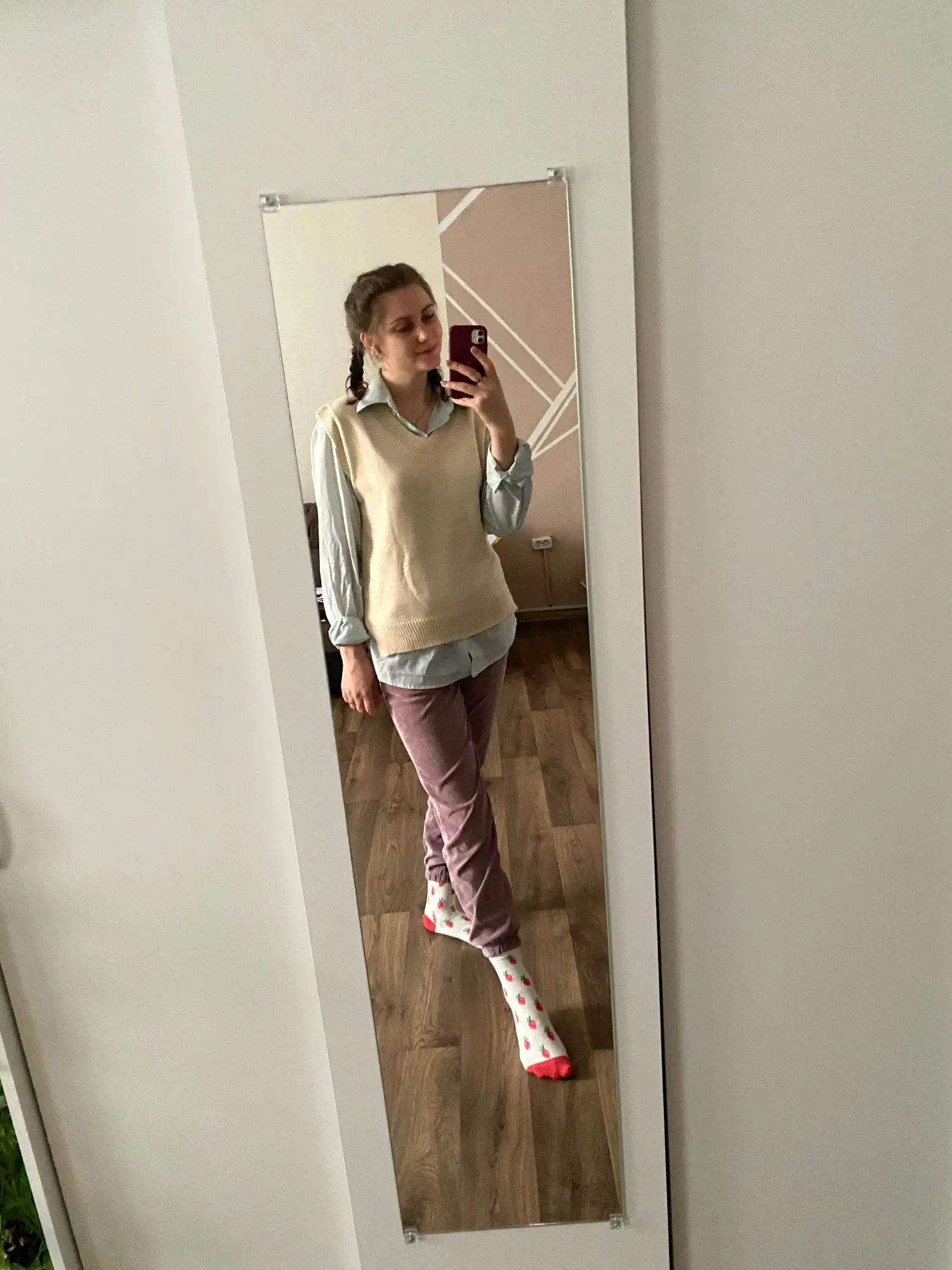 Yolk fire at 48 size looks like an ordinary yolk (not an oversize). The material is pleasant, the threads do not stick out, not too light is not too warm, the fire looks. The color is fully matched