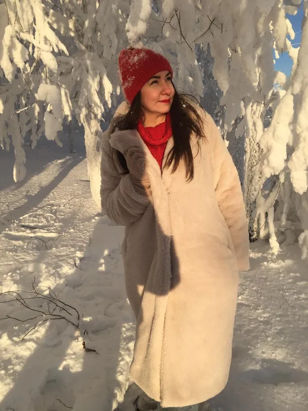 The fur coat is good, but not in severe frost. Thin and light ..... size at 46 took L perfectly. Quality is good. Seller good