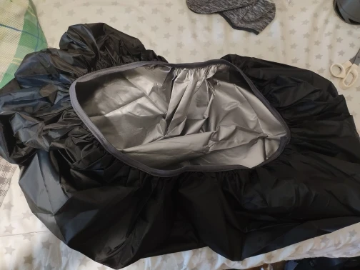 Parcel took 64 days to Italy which is still acceptable considering that it was ordered during 11.11 sale and winter holidays. The cover came folded in a plastic bag and is made of a cloth similar to the umbrella ones but the inner part has a silver waterproof layer. It's very capacious and adjustable although you'll need some time before being able to put it successfully due to its strong elastic bands but then it won't slide off that easily if you put the backpack on your shoulder. For the price it's awesome and very helpful as you can put it into a pocket so you'll be prepared if it starts to rain suddenly. For me it's a 9/10.