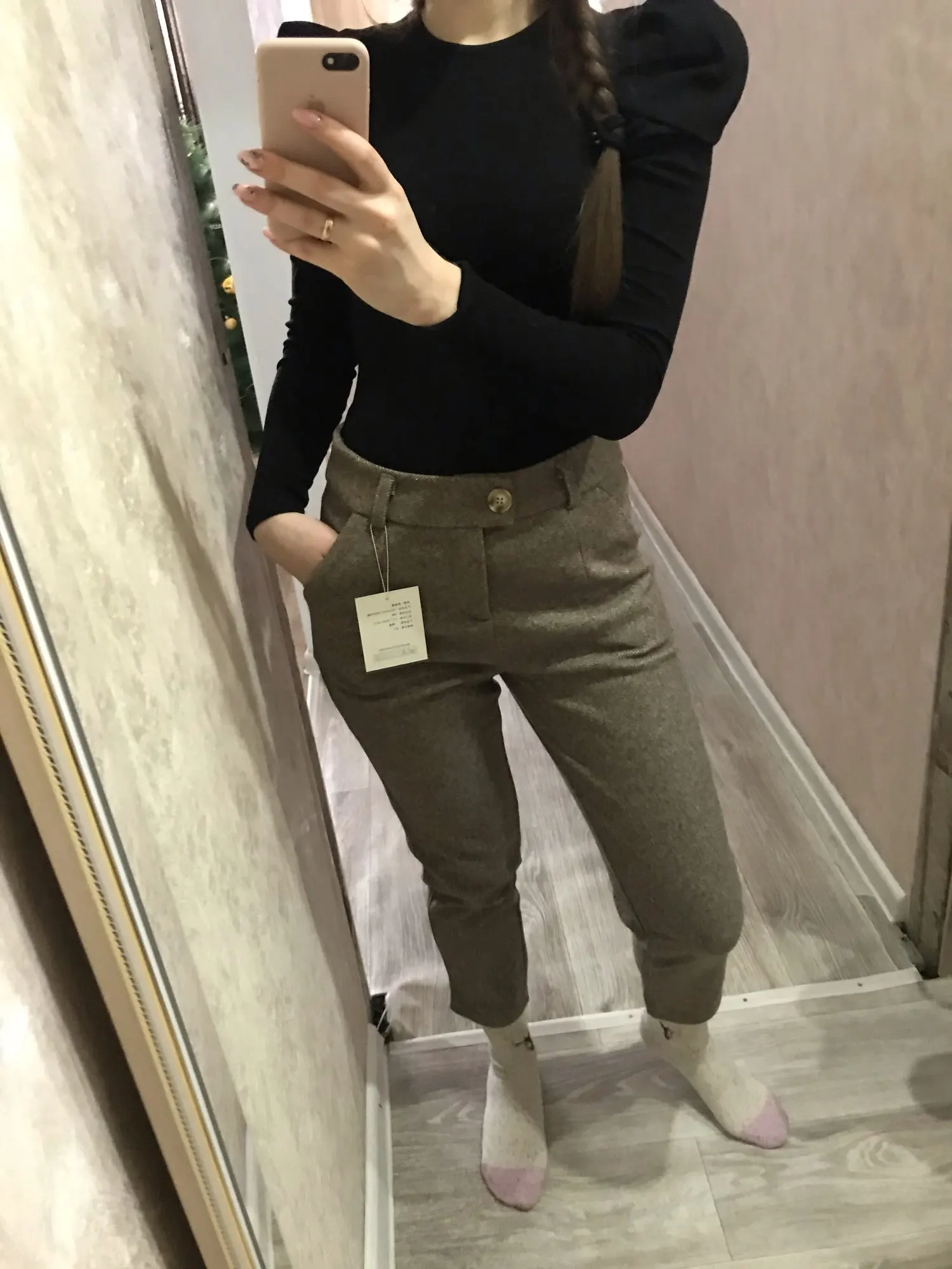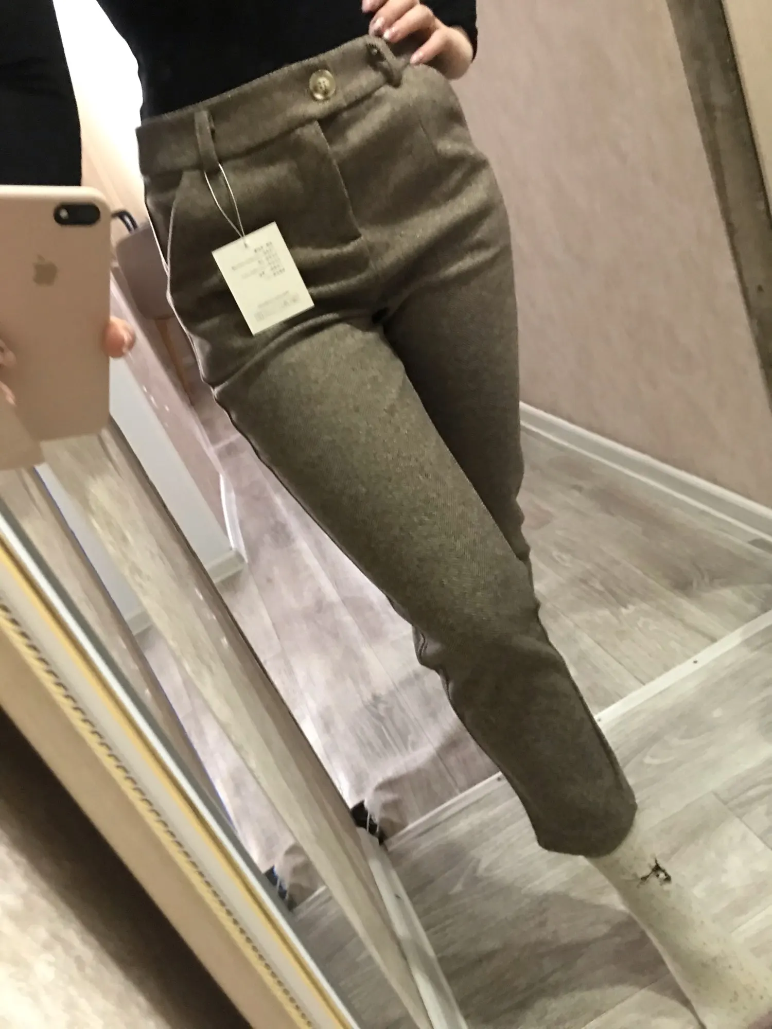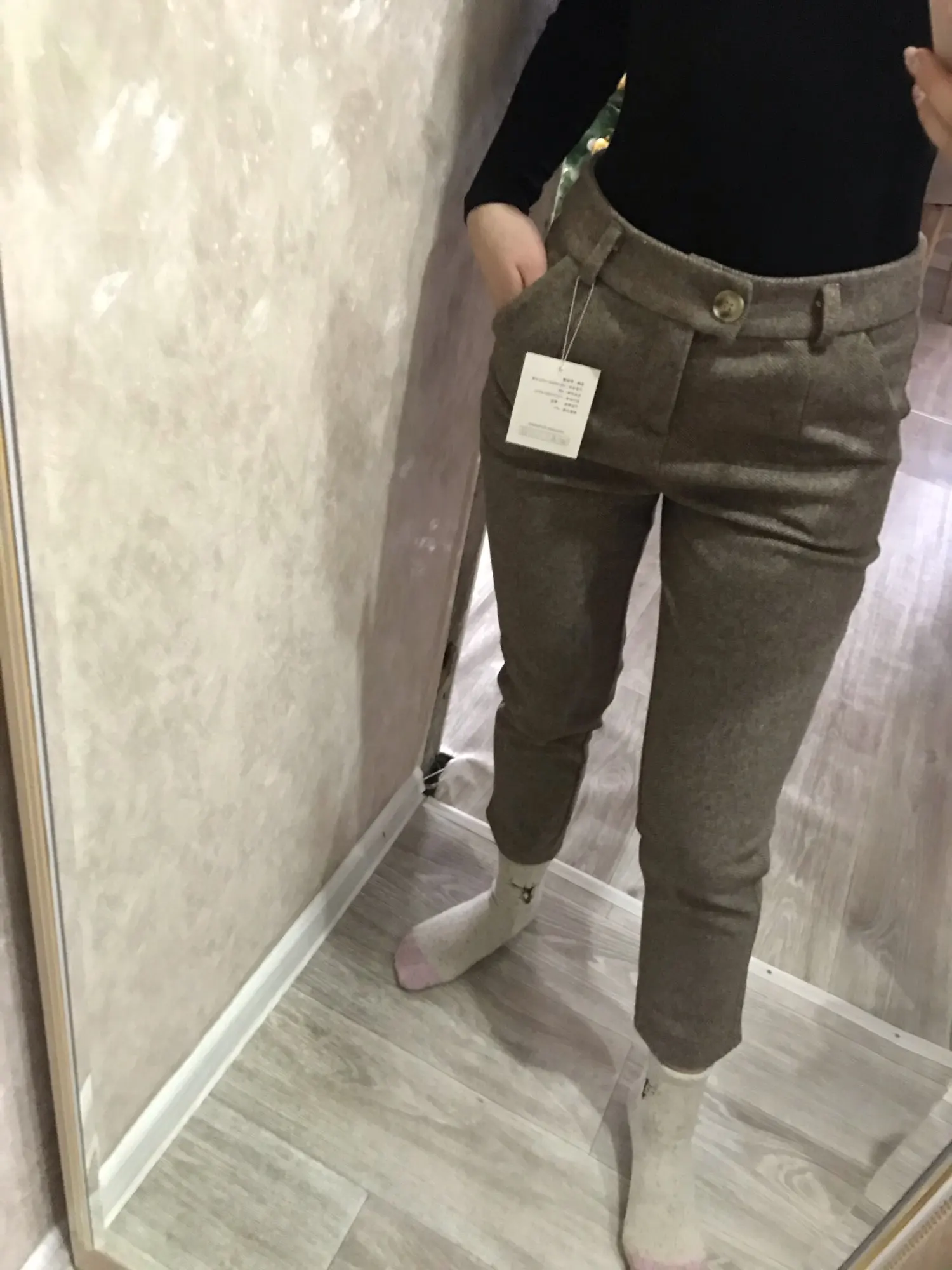 замечательно выглядит, материал плотный, хороший, красивый. на свои ОБ 95 и ОТ 73 Размер L подошёл отлично! не люблю, когда врезается или тесно, ткань не тянется!!!карманы глубокие, строчки ровные! спасибо за товар! процветания вашему магазину!