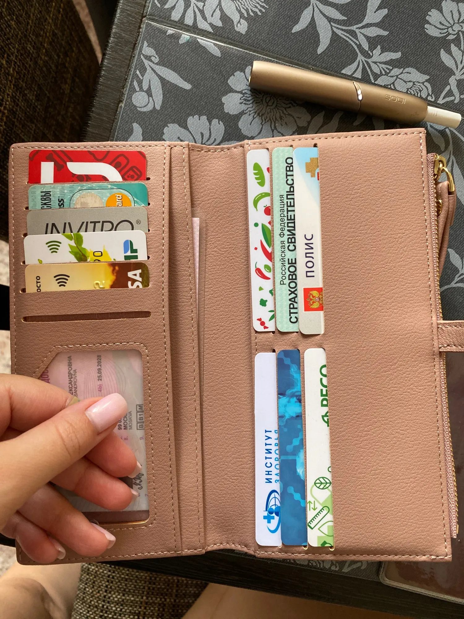 The purse is good. To the touch is pleasant. There are many cards for cards. But I certainly didn't have enough. And so it's decent. I came quickly.