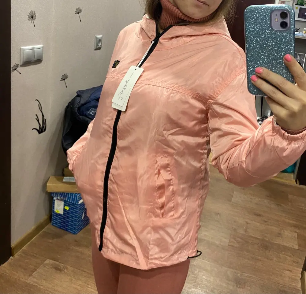 Delivery just over a month, the jacket is just super, in my 46-48 size came up perfectly. Can be worn on both sides, the color is beautiful, the length is good, sleeve length too (my height is 162). The Hood is also a normal size, in general, the windbreaker is better than expected. Seller respect.