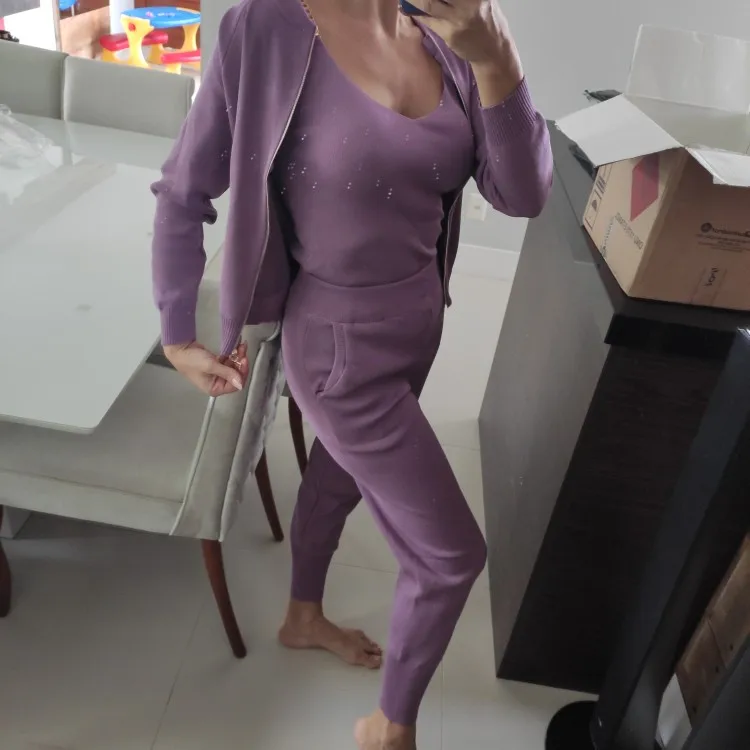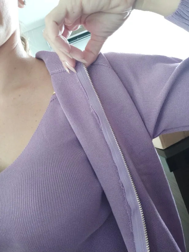 Material is soft and elastic, very comfortable and nice on the skin. Perfect for spring and autumn, and the top is versatile and you can also mix and match. The purple color is beautiful, a color soft and warm, and i am very pleased with the vestibility. Also fast delivery. Very pleased.