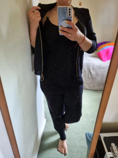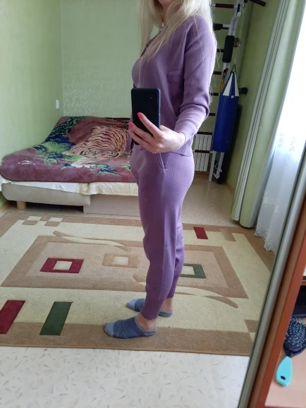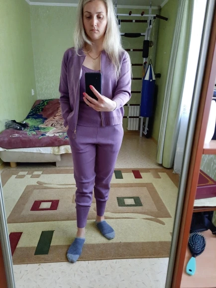Nice suit. On parameters 78:6 6:91, height 160 and weight 48 kg almost approached. Seller long sent order. The jacket is normal, the T-shirt needs a little to remove the length of the strapless-you can yourself. But the pants for my taste are wide and long. I have to give it to the seam, so that they sit better on the figure. Pure synthetics. From the wrong side, the suit is not processed at all. You have to take the scissors and put in order the line of the cut. The overall impression of the suit will depend on the quality of shoes and accessories.