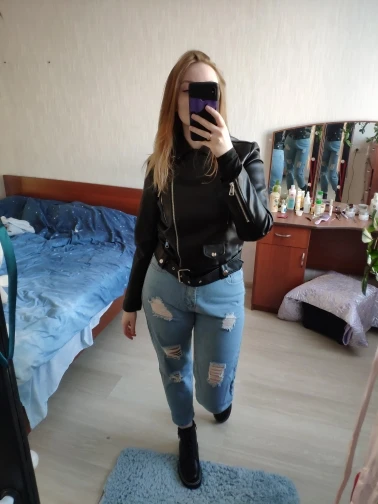 The jacket is cool, but tiny. My size is Russian 48 and on me it barely fits. Short. But I'll leave it, because in the process of slimming and still it will be able to sweat. But in the cold would not put on because of the short length, there will be a cold back. But the quality is on top! Soft, glue, locks are all in place. I smelled a little, but in a couple of days I weathered.