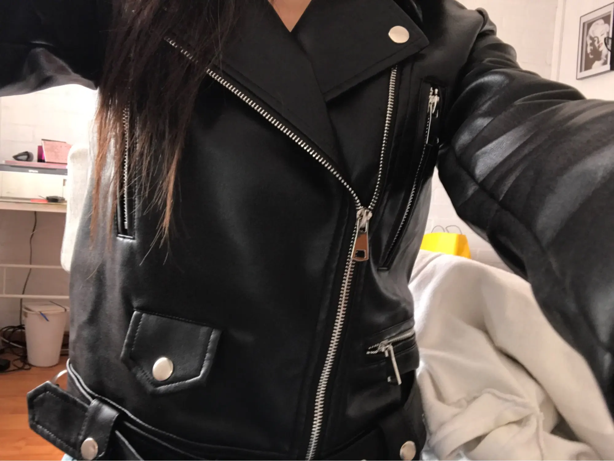 New Zipper Leather Jacket For Women in 2021. Cool And Stylish Leather Jacket. Size US UK EU Bust Shoulder Sleeve Length S 4 8 34 95cm/37.40'' 40cm/15.75'' 60cm/23.62'' 55cm/21.65'' M 6 10 36 100cm/39.37'' 41cm/16.14'' 60.5cm/23.82'' 56cm/22.05'' L 8 12 38 105cm/41.34'' 42cm/16.54'' 61cm/24.02'' 57cm/22.44'' XL 10 14 40 110cm/43.31'' 43cm/16.93'' 61.5cm/24.21'' 58cm/22.83'' XXL 12 16 42 115cm/45.28'' 44cm/17.32'' 62cm/24.41'' 59cm/23.23'' XXXL 14 18 44 120cm/47.24'' 45cm/17.72'' 62.5cm/24.61'' 60cm/23.62'' XXXXL 16 20 46 125cm/49.21'' 46cm/18.11'' 63cm/24.80'' 61cm/24.02'' XXXXXL 18 22 48 130cm/51.18'' 47cm/18.50'' 63.5cm/25.00'' 62cm/24.41''