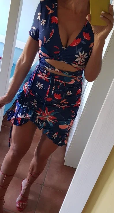 Floral Print Tie Up Wrap Mini Dress perfect for a Summer Holiday and can be paired with pants or a jacket.