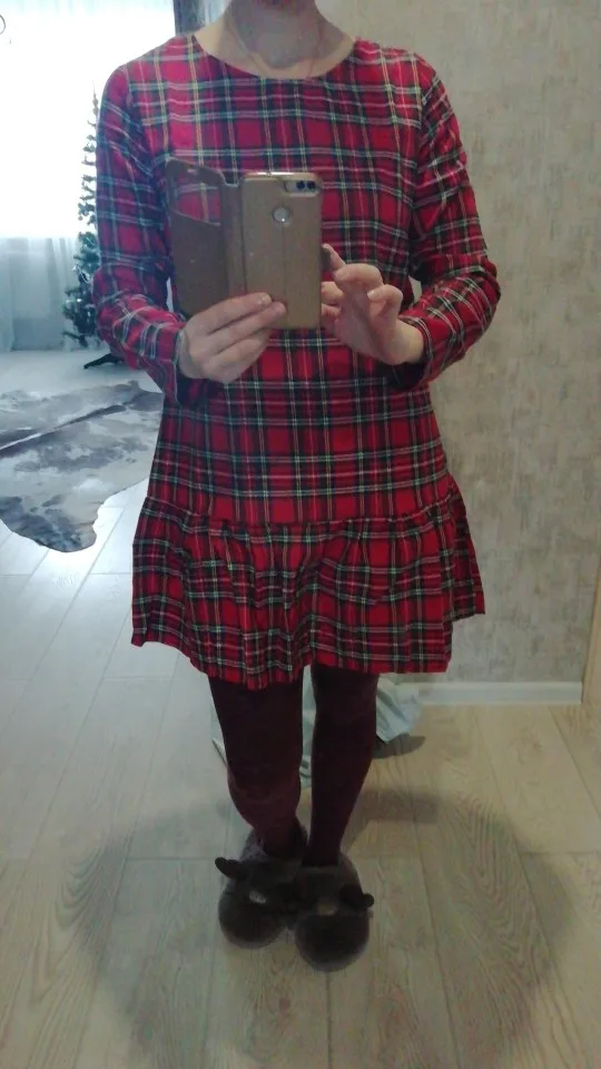 beautiful autumn dress. Fabric is thinner than expected, but still great. I ordered size L (EUR S) M would have fitted better. fast shipping, nicely finished. Thank you