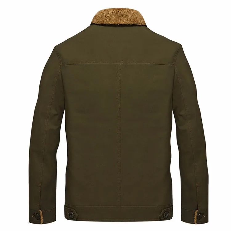 Thick and Warm Jacket for Men with Military Details, Wool Lining, Buttons and Turned-down Collar