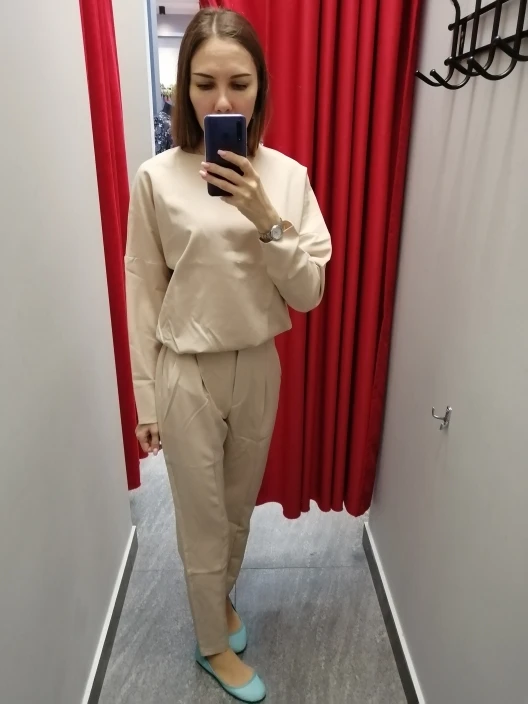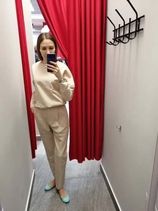 How glad I am that this model appeared in black. I already have such beige, some of the best of my trousers. black fabric is thinner than beige and not stitched arrows, but pants are still good. And black and beige fit on my 170 cm, the fabric does not shine. Got to Kursk in 1.5 weeks. I ordered s at the waist 65, hips 95