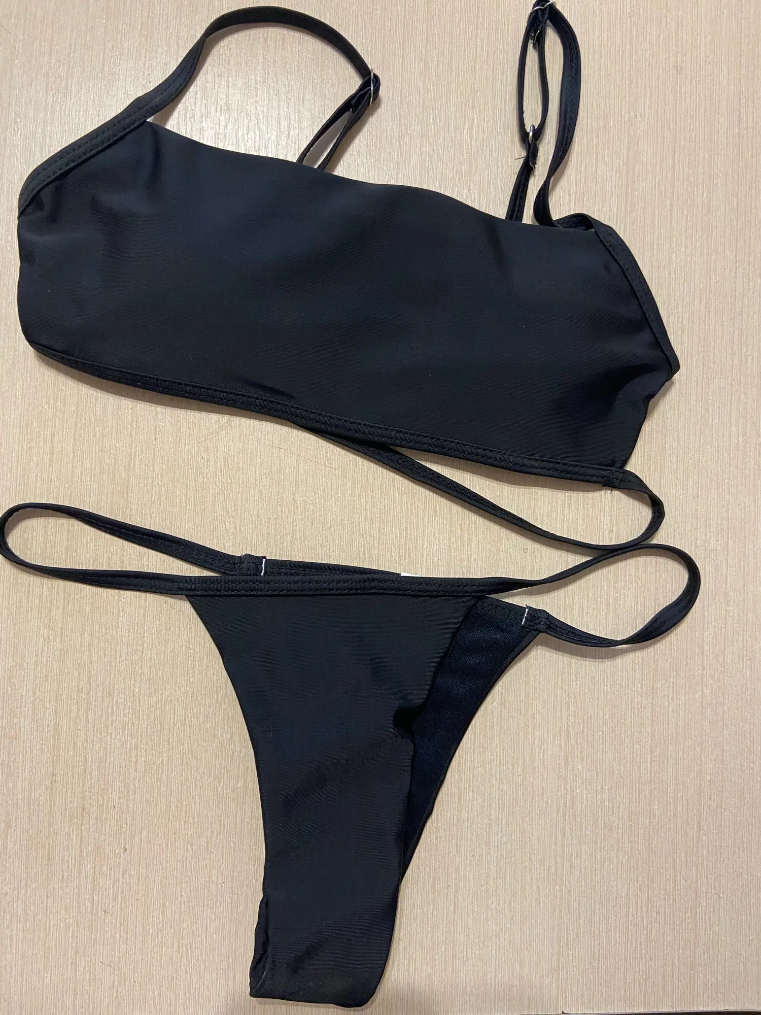 New in 2021 for Women Spaghetti Strap Bikini Set. Solid Bright Colour Padded Low Waist Thong Bottoms Swimwear.
