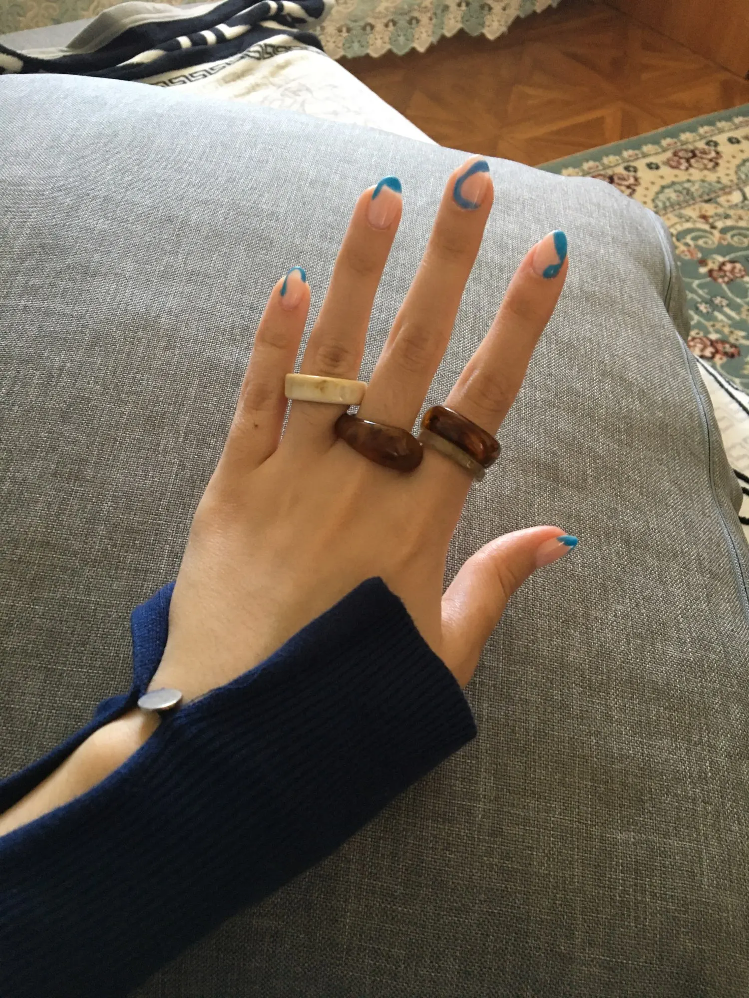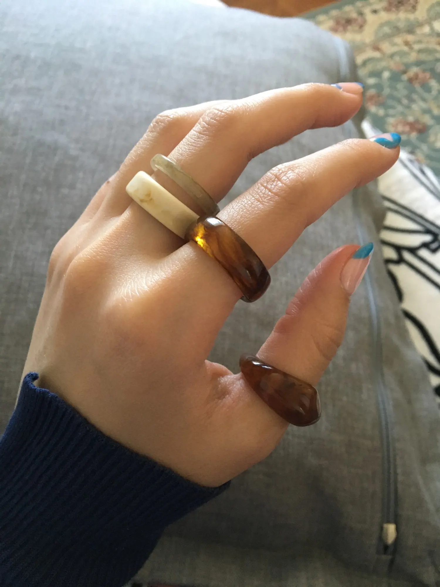 Rings are just a bomb! In the shops of my country (Ukraine), I met this set 3-4 times more expensive! I will buy only on Ali! I recommend the store and this lot. 5 out of 5. ringlets sit well on the index and middle finger. On the nameless and pinky-are too big.