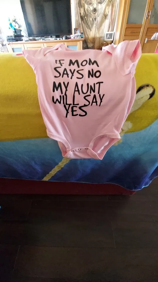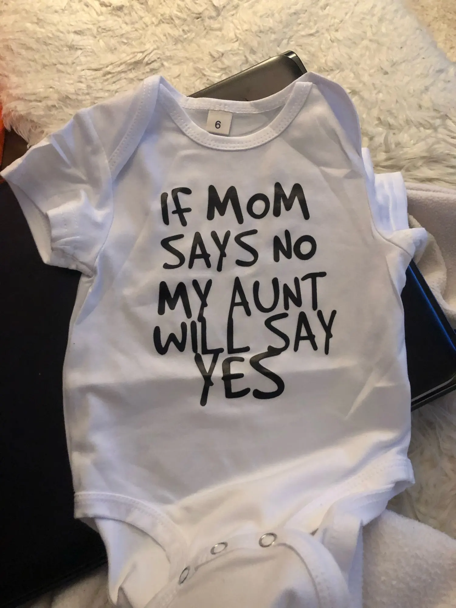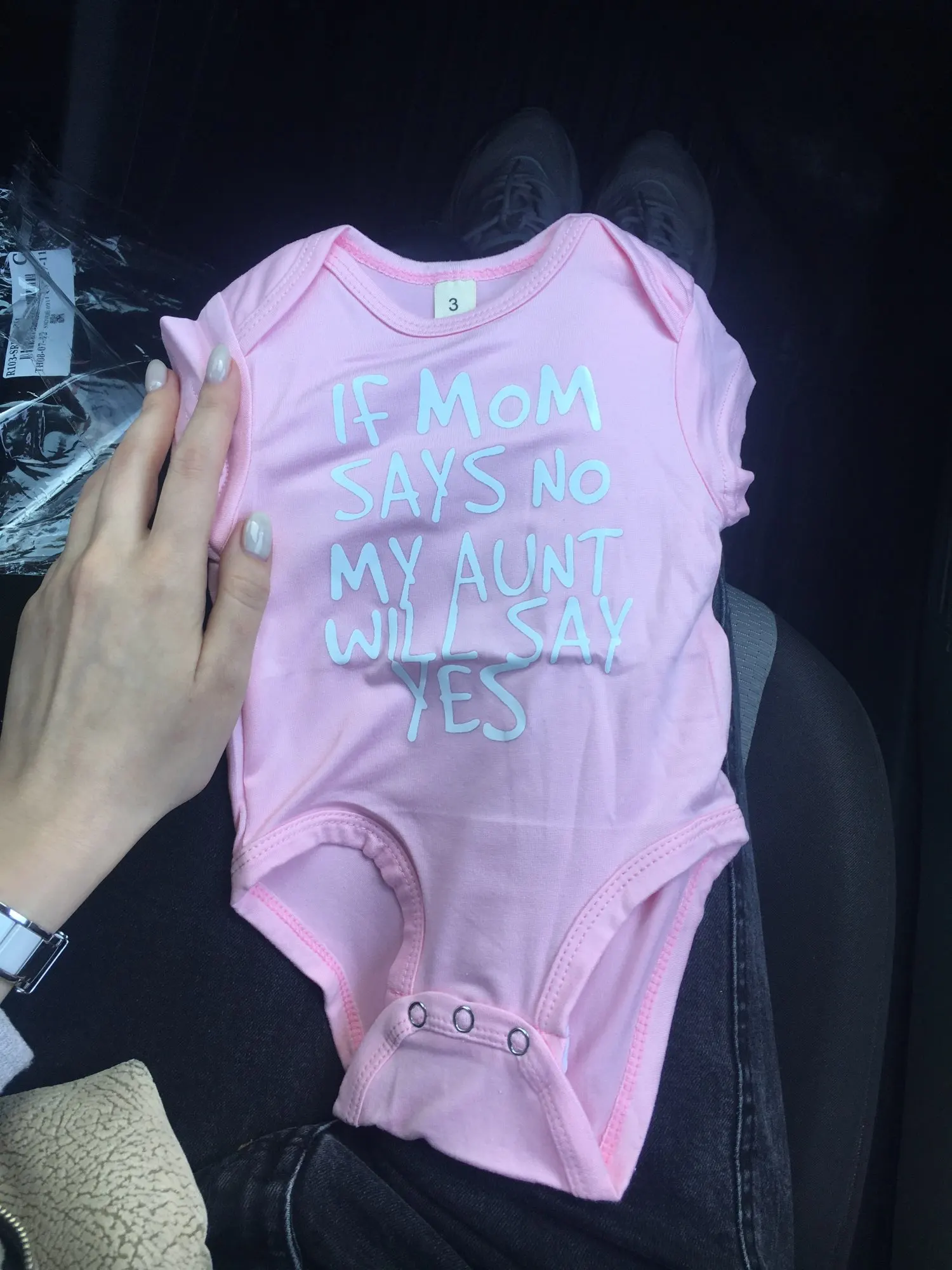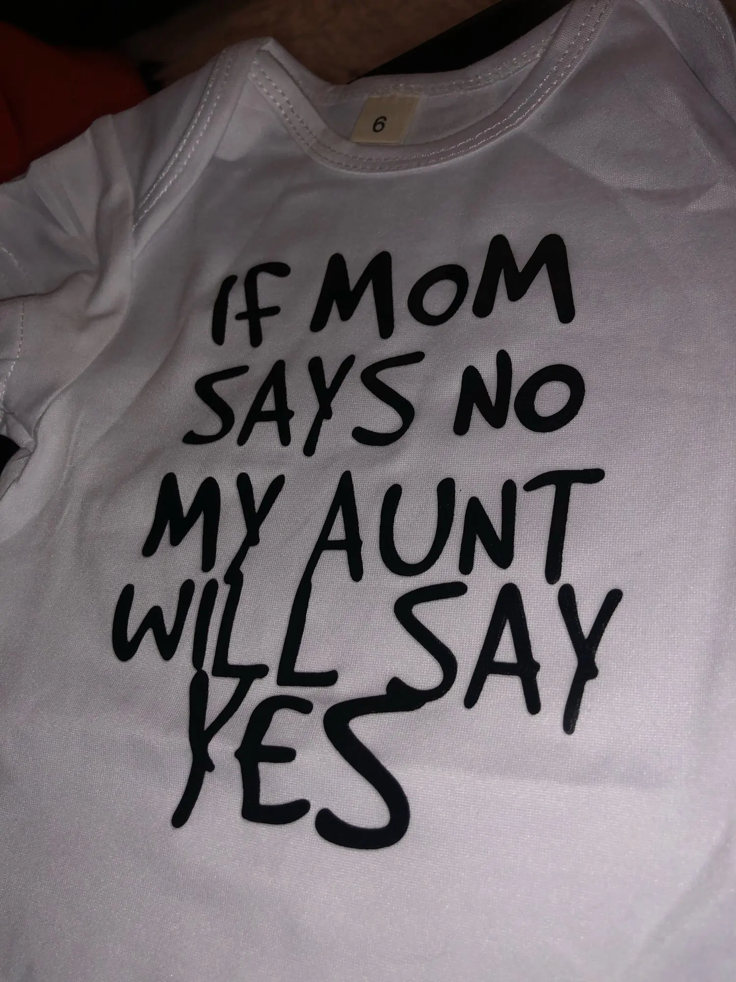 If Mom Says No My Aunt Will Say Yes!Super Cute and Funny Newborn Baby RomperInfant Cotton Short Sleeve Baby Girl or Boy New Born Clothes 0-24M